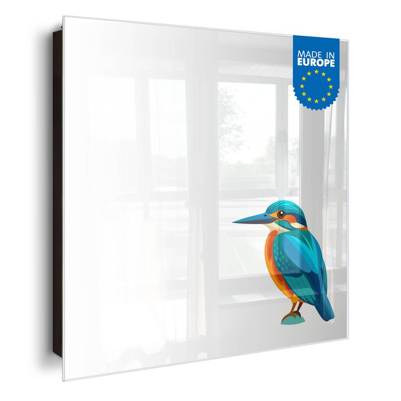 Bringe Ordnung und Eleganz in deinen Eingangsbereich mit dem banjado Schlüsselkasten Motiv Motiv Eisvogel Illustration. Die moderne Schlüsselbox kombiniert funktionales Design mit hochwertiger Verarbeitung und wird so zu einem echten Hingucker in Flur, Büro oder Ferienwohnung. ✅ Stilvolle Schlüsselaufbewahrung mit Glasfront im Motiv Motiv Eisvogel Illustration Der Design-Schlüsselkasten Motiv Motiv Eisvogel Illustration bietet Platz für bis zu 50 Schlüssel, die auf 5 stabilen Reihen mit je 10 Haken übersichtlich verstaut werden. Mit seinen kompakten Maßen von 30 x 30 x 5 cm passt die Schlüsselbox perfekt auch in kleinere Räume. Der schwarz lackierte Stahlkorpus mit rechts angeschlagenem Türscharnier harmoniert mit der Glasfront und fügt sich nahtlos in jedes Wohnambiente ein. Ob als Schlüsselorganizer für Zuhause oder als praktische Lösung für Büros, Praxen und Gewerbe, der banjado Schlüsselkasten sorgt für Ordnung und Übersicht. Dank der magnetischen, mit Kreidestiften beschreibbaren Glasfront kannst du Notizen anheften oder Termine direkt auf der Oberfläche festhalten. Die Schlüsselbox Motiv Motiv Eisvogel Illustration zur Wandmontage wird inklusive Befestigungsmaterial geliefert und ist schnell angebracht. So hast du deine Schlüssel jederzeit griffbereit und zugleich stilvoll verstaut. Mit diesem banjado Schlüsselkasten Motiv Motiv Eisvogel Illustration kombinierst du praktische Aufbewahrung mit stilvollem Wohndesign. Ob privat oder geschäftlich, die Schlüsselbox sorgt für mehr Ordnung, Übersicht und ein wohnliches Ambiente.Vorteile im Überblick