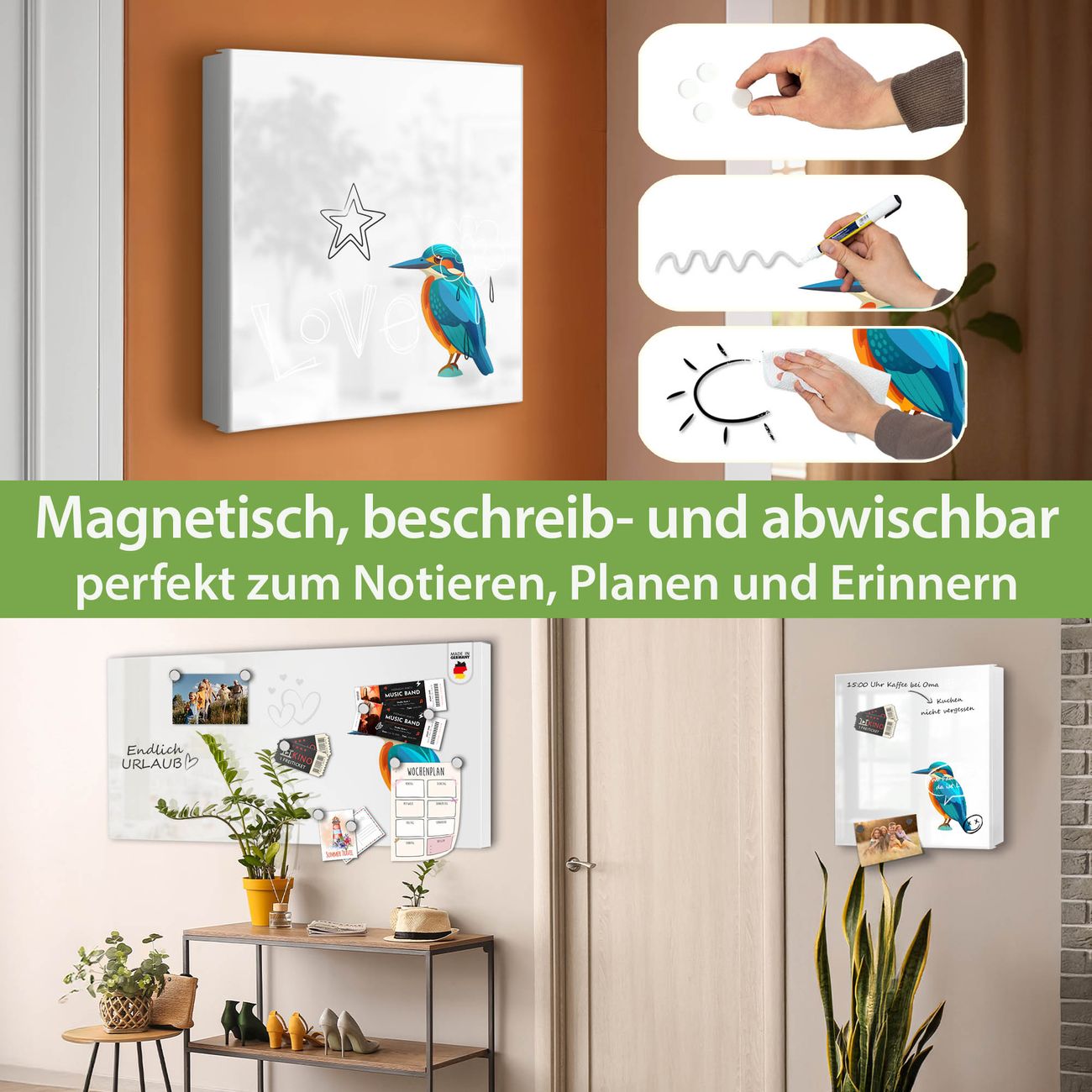✅ Magnetisch und mit Kreidestift beschreibbar, links angeschlagene TürOrdnung und Design in einem