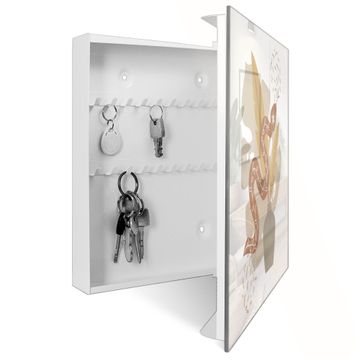 Bringe Ordnung und Eleganz in deinen Eingangsbereich mit dem banjado Schlüsselkasten Motiv Motiv Elegante Schlange. Die moderne Schlüsselbox kombiniert funktionales Design mit hochwertiger Verarbeitung und wird so zu einem echten Hingucker in Flur, Büro oder Ferienwohnung. ✅ Stilvolle Schlüsselaufbewahrung mit Glasfront im Motiv Motiv Elegante Schlange Der Design-Schlüsselkasten Motiv Motiv Elegante Schlange bietet Platz für bis zu 50 Schlüssel, die auf 5 stabilen Reihen mit je 10 Haken übersichtlich verstaut werden. Mit seinen kompakten Maßen von 30 x 30 x 5 cm passt die Schlüsselbox perfekt auch in kleinere Räume. Der weiß lackierte Stahlkorpus mit rechts angeschlagenem Türscharnier harmoniert mit der Glasfront und fügt sich nahtlos in jedes Wohnambiente ein. Ob als Schlüsselorganizer für Zuhause oder als praktische Lösung für Büros, Praxen und Gewerbe, der banjado Schlüsselkasten sorgt für Ordnung und Übersicht. Dank der magnetischen, mit Kreidestiften beschreibbaren Glasfront kannst du Notizen anheften oder Termine direkt auf der Oberfläche festhalten. Die Schlüsselbox Motiv Motiv Elegante Schlange zur Wandmontage wird inklusive Befestigungsmaterial geliefert und ist schnell angebracht. So hast du deine Schlüssel jederzeit griffbereit und zugleich stilvoll verstaut. Mit diesem banjado Schlüsselkasten Motiv Motiv Elegante Schlange kombinierst du praktische Aufbewahrung mit stilvollem Wohndesign. Ob privat oder geschäftlich, die Schlüsselbox sorgt für mehr Ordnung, Übersicht und ein wohnliches Ambiente.Vorteile im Überblick
