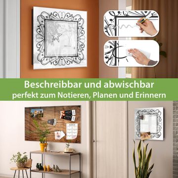 Bringe Ordnung und Eleganz in deinen Eingangsbereich mit dem banjado Schlüsselkasten Motiv Motiv Elegantes Herz-Ornament. Die moderne Schlüsselbox kombiniert funktionales Design mit hochwertiger Verarbeitung und wird so zu einem echten Hingucker in Flur, Büro oder Ferienwohnung. ✅ Stilvolle Schlüsselaufbewahrung mit Glasfront im Motiv Motiv Elegantes Herz-Ornament Der Design-Schlüsselkasten Motiv Motiv Elegantes Herz-Ornament bietet Platz für bis zu 50 Schlüssel, die auf 5 stabilen Reihen mit je 10 Haken übersichtlich verstaut werden. Mit seinen kompakten Maßen von 30 x 30 x 5 cm passt die Schlüsselbox perfekt auch in kleinere Räume. Der schwarz lackierte Stahlkorpus mit rechts angeschlagenem Türscharnier harmoniert mit der Glasfront und fügt sich nahtlos in jedes Wohnambiente ein. Ob als Schlüsselorganizer für Zuhause oder als praktische Lösung für Büros, Praxen und Gewerbe, der banjado Schlüsselkasten sorgt für Ordnung und Übersicht. Dank der magnetischen, mit Kreidestiften beschreibbaren Glasfront kannst du Notizen anheften oder Termine direkt auf der Oberfläche festhalten. Die Schlüsselbox Motiv Motiv Elegantes Herz-Ornament zur Wandmontage wird inklusive Befestigungsmaterial geliefert und ist schnell angebracht. So hast du deine Schlüssel jederzeit griffbereit und zugleich stilvoll verstaut. Mit diesem banjado Schlüsselkasten Motiv Motiv Elegantes Herz-Ornament kombinierst du praktische Aufbewahrung mit stilvollem Wohndesign. Ob privat oder geschäftlich, die Schlüsselbox sorgt für mehr Ordnung, Übersicht und ein wohnliches Ambiente.Vorteile im Überblick