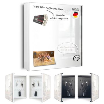 Bringe Ordnung und Eleganz in deinen Eingangsbereich mit dem banjado Schlüsselkasten Motiv Motiv Elegantes Ornament. Die moderne Schlüsselbox kombiniert funktionales Design mit hochwertiger Verarbeitung und wird so zu einem echten Hingucker in Flur, Büro oder Ferienwohnung. ✅ Stilvolle Schlüsselaufbewahrung mit Motiv Motiv Elegantes Ornament Der Design-Schlüsselkasten Motiv Motiv Elegantes Ornament bietet Platz für bis zu 32 Schlüssel, die auf 4 stabilen Reihen mit je 8 Haken übersichtlich verstaut werden. Mit seinen kompakten Maßen von 30 x 30 x 5 cm passt die Schlüsselbox perfekt auch in kleinere Räume. Der weiß lackierte Stahlkorpus mit rechts angeschlagenem Türscharnier harmoniert mit gedruckten Folie auf der Front und fügt sich nahtlos in jedes Wohnambiente ein. Ob als Schlüsselorganizer für Zuhause oder als praktische Lösung für Büros, Praxen und Gewerbe, der banjado Schlüsselkasten sorgt für Ordnung und Übersicht. Dank der magnetischen, mit Kreidestiften beschreibbaren Folie auf der Front kannst du Notizen anheften oder Termine direkt auf der Oberfläche festhalten. Die Schlüsselbox Motiv Motiv Elegantes Ornament zur Wandmontage wird inklusive Befestigungsmaterial geliefert und ist schnell angebracht. So hast du deine Schlüssel jederzeit griffbereit und zugleich stilvoll verstaut. Mit diesem banjado Schlüsselkasten Motiv Motiv Elegantes Ornament kombinierst du praktische Aufbewahrung mit stilvollem Wohndesign. Ob privat oder geschäftlich, die Schlüsselbox sorgt für mehr Ordnung, Übersicht und ein wohnliches Ambiente.Vorteile im Überblick