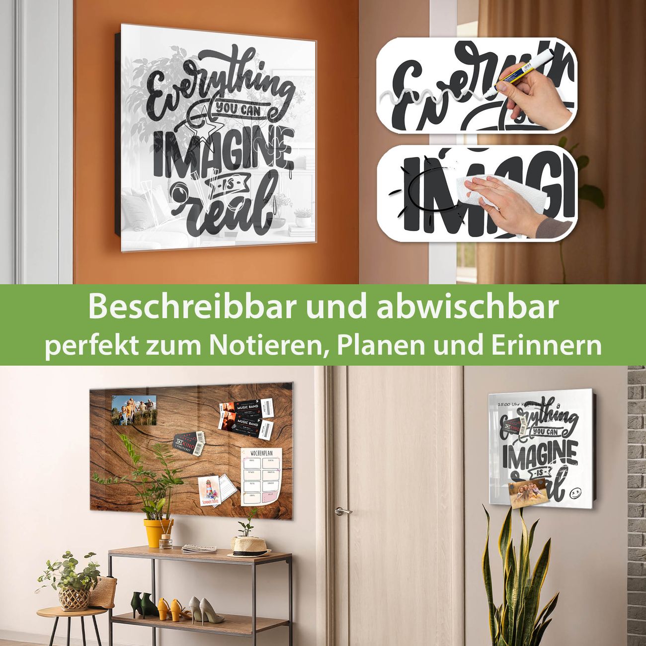 ✅ Magnetisch und mit Kreidestift beschreibbar, gehärtetes Glas, rechts angeschlagene TürOrdnung und Design in einem