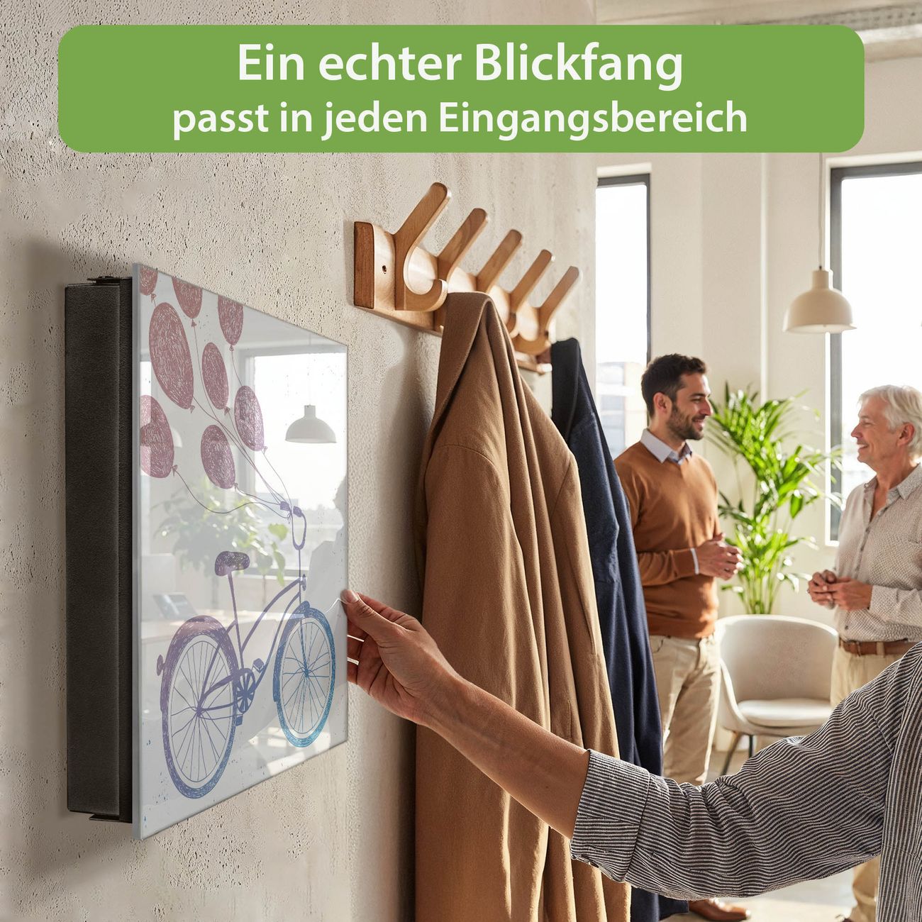 Schlüsselkasten Glas Motiv Fahrrad mit Luftballons
