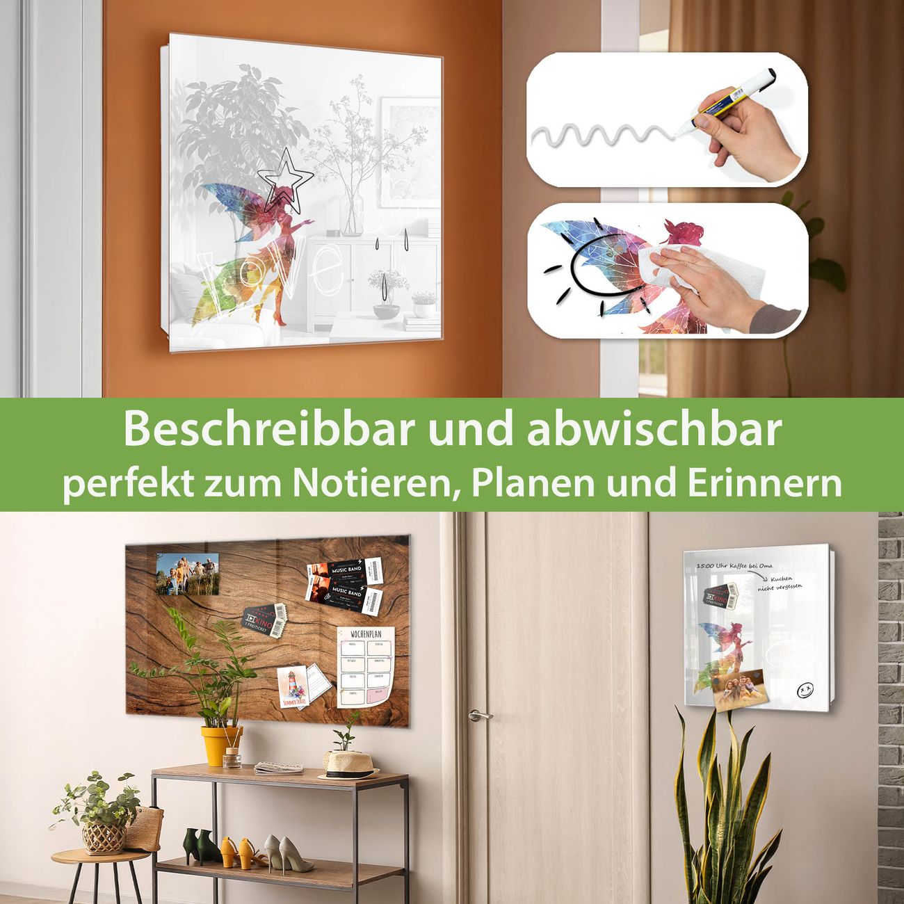 ✅ Magnetisch und mit Kreidestift beschreibbar, gehärtetes Glas, rechts angeschlagene TürOrdnung und Design in einem