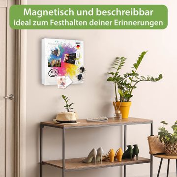 Bringe Ordnung und Eleganz in deinen Eingangsbereich mit dem banjado Schlüsselkasten Motiv Motiv Farbexplosion 2. Die moderne Schlüsselbox kombiniert funktionales Design mit hochwertiger Verarbeitung und wird so zu einem echten Hingucker in Flur, Büro oder Ferienwohnung. ✅ Stilvolle Schlüsselaufbewahrung mit Motiv Motiv Farbexplosion 2 Der Design-Schlüsselkasten Motiv Motiv Farbexplosion 2 bietet Platz für bis zu 32 Schlüssel, die auf 4 stabilen Reihen mit je 8 Haken übersichtlich verstaut werden. Mit seinen kompakten Maßen von 30 x 30 x 5 cm passt die Schlüsselbox perfekt auch in kleinere Räume. Der weiß lackierte Stahlkorpus mit links angeschlagenem Türscharnier harmoniert mit gedruckten Folie auf der Front und fügt sich nahtlos in jedes Wohnambiente ein. Ob als Schlüsselorganizer für Zuhause oder als praktische Lösung für Büros, Praxen und Gewerbe, der banjado Schlüsselkasten sorgt für Ordnung und Übersicht. Dank der magnetischen, mit Kreidestiften beschreibbaren Folie auf der Front kannst du Notizen anheften oder Termine direkt auf der Oberfläche festhalten. Die Schlüsselbox Motiv Motiv Farbexplosion 2 zur Wandmontage wird inklusive Befestigungsmaterial geliefert und ist schnell angebracht. So hast du deine Schlüssel jederzeit griffbereit und zugleich stilvoll verstaut. Mit diesem banjado Schlüsselkasten Motiv Motiv Farbexplosion 2 kombinierst du praktische Aufbewahrung mit stilvollem Wohndesign. Ob privat oder geschäftlich, die Schlüsselbox sorgt für mehr Ordnung, Übersicht und ein wohnliches Ambiente.Vorteile im Überblick
