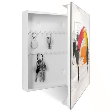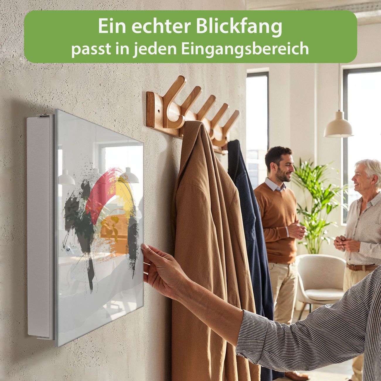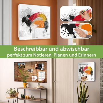 Bringe Ordnung und Eleganz in deinen Eingangsbereich mit dem banjado Schlüsselkasten Motiv Motiv Farbexplosion. Die moderne Schlüsselbox kombiniert funktionales Design mit hochwertiger Verarbeitung und wird so zu einem echten Hingucker in Flur, Büro oder Ferienwohnung. ✅ Stilvolle Schlüsselaufbewahrung mit Glasfront im Motiv Motiv Farbexplosion Der Design-Schlüsselkasten Motiv Motiv Farbexplosion bietet Platz für bis zu 50 Schlüssel, die auf 5 stabilen Reihen mit je 10 Haken übersichtlich verstaut werden. Mit seinen kompakten Maßen von 30 x 30 x 5 cm passt die Schlüsselbox perfekt auch in kleinere Räume. Der weiß lackierte Stahlkorpus mit rechts angeschlagenem Türscharnier harmoniert mit der Glasfront und fügt sich nahtlos in jedes Wohnambiente ein. Ob als Schlüsselorganizer für Zuhause oder als praktische Lösung für Büros, Praxen und Gewerbe, der banjado Schlüsselkasten sorgt für Ordnung und Übersicht. Dank der magnetischen, mit Kreidestiften beschreibbaren Glasfront kannst du Notizen anheften oder Termine direkt auf der Oberfläche festhalten. Die Schlüsselbox Motiv Motiv Farbexplosion zur Wandmontage wird inklusive Befestigungsmaterial geliefert und ist schnell angebracht. So hast du deine Schlüssel jederzeit griffbereit und zugleich stilvoll verstaut. Mit diesem banjado Schlüsselkasten Motiv Motiv Farbexplosion kombinierst du praktische Aufbewahrung mit stilvollem Wohndesign. Ob privat oder geschäftlich, die Schlüsselbox sorgt für mehr Ordnung, Übersicht und ein wohnliches Ambiente.Vorteile im Überblick