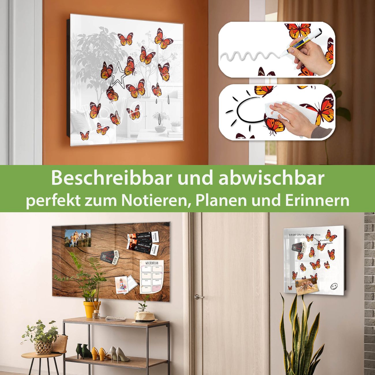 ✅ Magnetisch und mit Kreidestift beschreibbar, gehärtetes Glas, links angeschlagene TürOrdnung und Design in einem