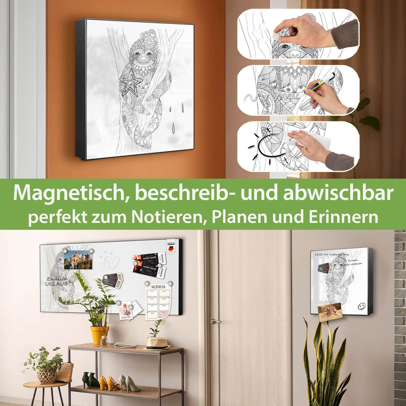 ✅ Magnetisch und mit Kreidestift beschreibbar, links angeschlagene TürOrdnung und Design in einem