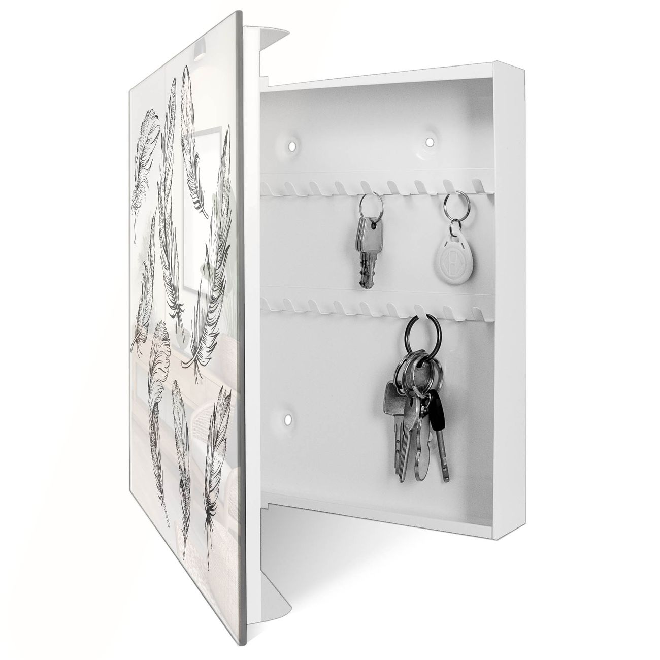 Schlüsselkasten Glas Motiv Federn 2
