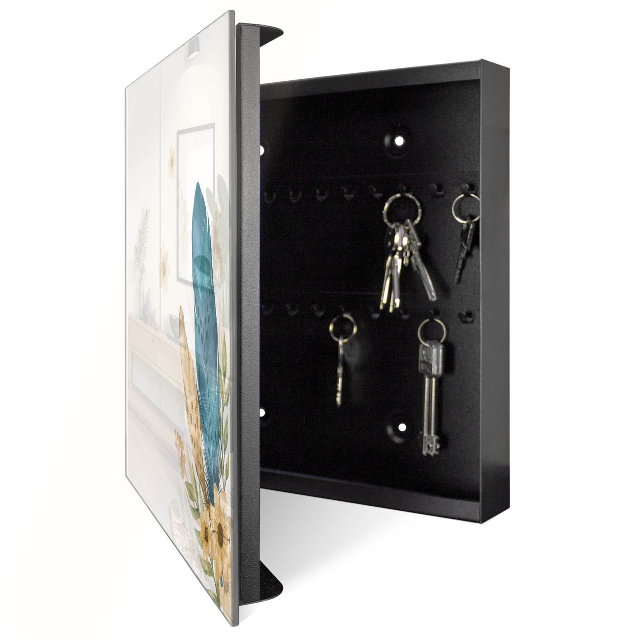 Schlüsselkasten Glas Motiv Federn und Blüten