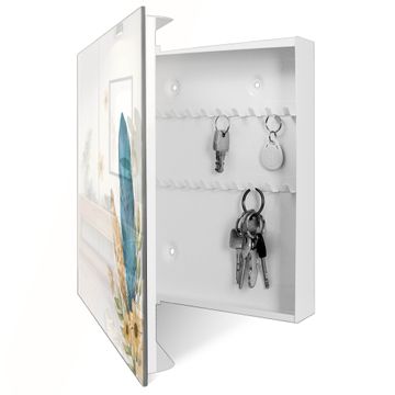 Schlüsselkasten Glas Motiv Federn und Blüten