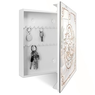 Bringe Ordnung und Eleganz in deinen Eingangsbereich mit dem banjado Schlüsselkasten Motiv Motiv Fische Sternzeichen Illustration. Die moderne Schlüsselbox kombiniert funktionales Design mit hochwertiger Verarbeitung und wird so zu einem echten Hingucker in Flur, Büro oder Ferienwohnung. ✅ Stilvolle Schlüsselaufbewahrung mit Glasfront im Motiv Motiv Fische Sternzeichen Illustration Der Design-Schlüsselkasten Motiv Motiv Fische Sternzeichen Illustration bietet Platz für bis zu 50 Schlüssel, die auf 5 stabilen Reihen mit je 10 Haken übersichtlich verstaut werden. Mit seinen kompakten Maßen von 30 x 30 x 5 cm passt die Schlüsselbox perfekt auch in kleinere Räume. Der weiß lackierte Stahlkorpus mit rechts angeschlagenem Türscharnier harmoniert mit der Glasfront und fügt sich nahtlos in jedes Wohnambiente ein. Ob als Schlüsselorganizer für Zuhause oder als praktische Lösung für Büros, Praxen und Gewerbe, der banjado Schlüsselkasten sorgt für Ordnung und Übersicht. Dank der magnetischen, mit Kreidestiften beschreibbaren Glasfront kannst du Notizen anheften oder Termine direkt auf der Oberfläche festhalten. Die Schlüsselbox Motiv Motiv Fische Sternzeichen Illustration zur Wandmontage wird inklusive Befestigungsmaterial geliefert und ist schnell angebracht. So hast du deine Schlüssel jederzeit griffbereit und zugleich stilvoll verstaut. Mit diesem banjado Schlüsselkasten Motiv Motiv Fische Sternzeichen Illustration kombinierst du praktische Aufbewahrung mit stilvollem Wohndesign. Ob privat oder geschäftlich, die Schlüsselbox sorgt für mehr Ordnung, Übersicht und ein wohnliches Ambiente.Vorteile im Überblick