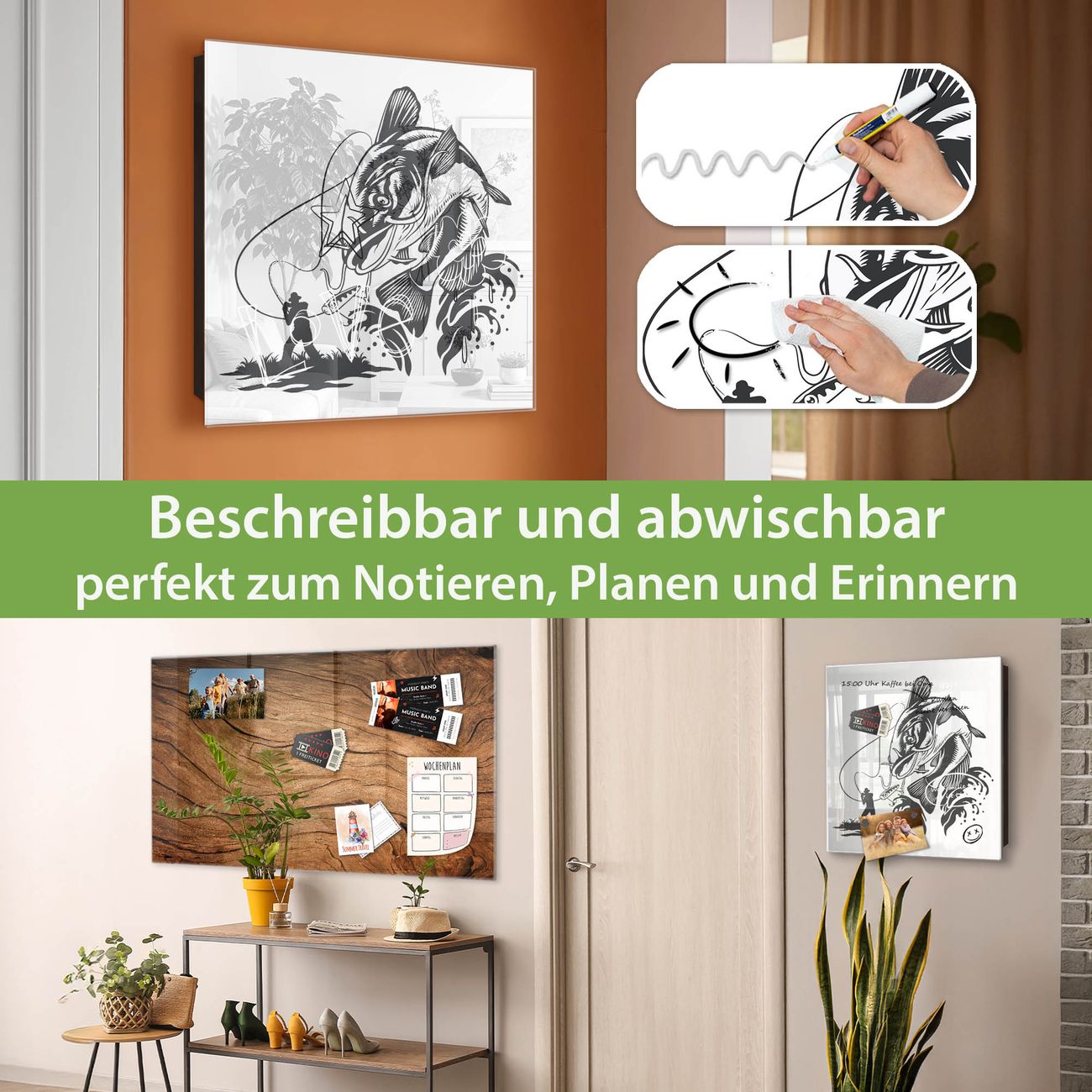 ✅ Magnetisch und mit Kreidestift beschreibbar, gehärtetes Glas, links angeschlagene TürOrdnung und Design in einem