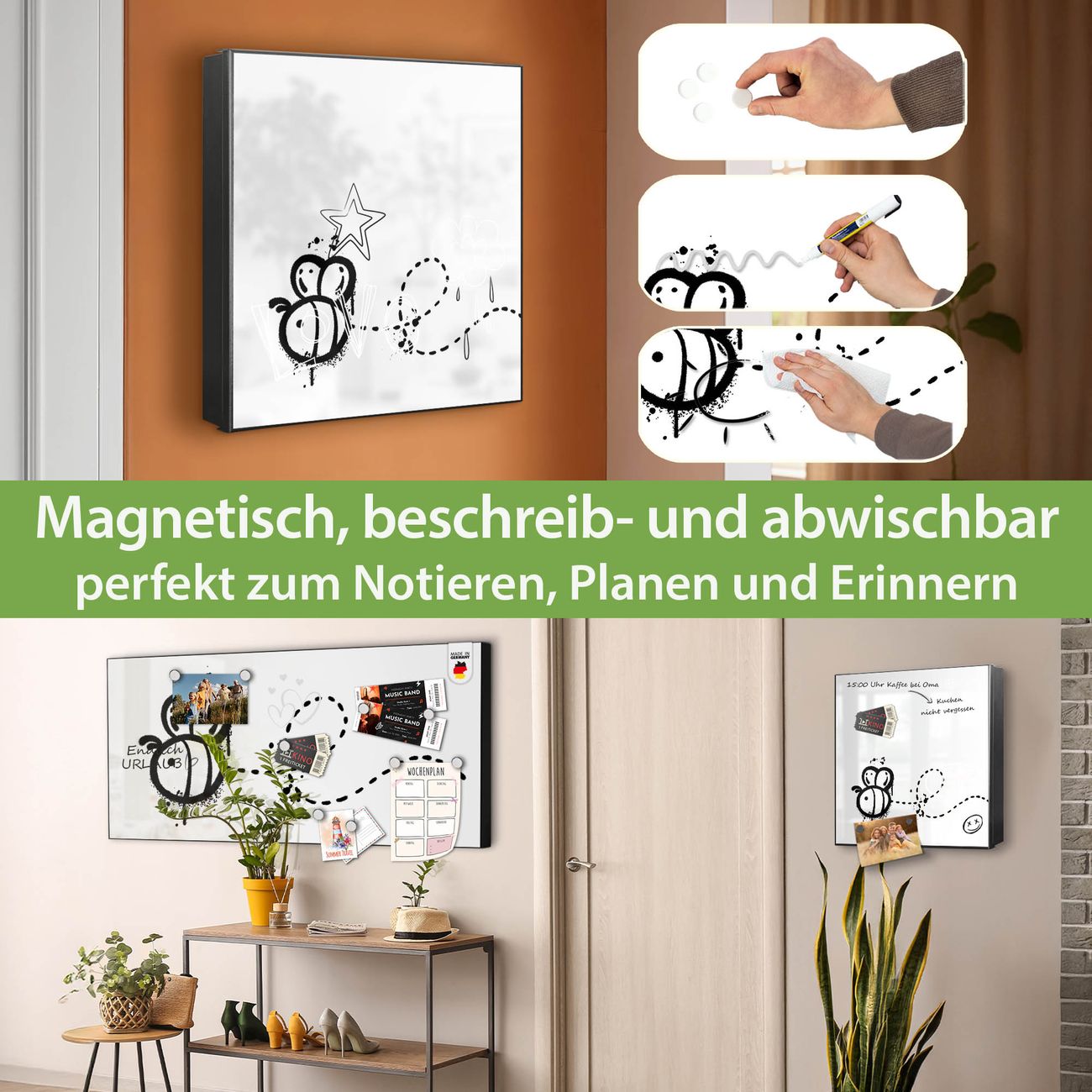 ✅ Magnetisch und mit Kreidestift beschreibbar, rechts angeschlagene TürOrdnung und Design in einem