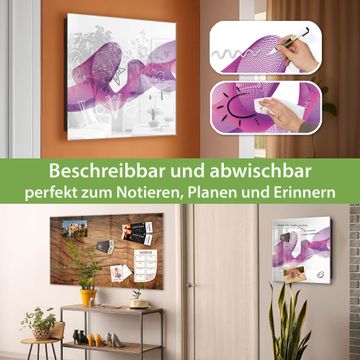 Bringe Ordnung und Eleganz in deinen Eingangsbereich mit dem banjado Schlüsselkasten Motiv Motiv Fließende Kurven. Die moderne Schlüsselbox kombiniert funktionales Design mit hochwertiger Verarbeitung und wird so zu einem echten Hingucker in Flur, Büro oder Ferienwohnung. ✅ Stilvolle Schlüsselaufbewahrung mit Glasfront im Motiv Motiv Fließende Kurven Der Design-Schlüsselkasten Motiv Motiv Fließende Kurven bietet Platz für bis zu 50 Schlüssel, die auf 5 stabilen Reihen mit je 10 Haken übersichtlich verstaut werden. Mit seinen kompakten Maßen von 30 x 30 x 5 cm passt die Schlüsselbox perfekt auch in kleinere Räume. Der schwarz lackierte Stahlkorpus mit rechts angeschlagenem Türscharnier harmoniert mit der Glasfront und fügt sich nahtlos in jedes Wohnambiente ein. Ob als Schlüsselorganizer für Zuhause oder als praktische Lösung für Büros, Praxen und Gewerbe, der banjado Schlüsselkasten sorgt für Ordnung und Übersicht. Dank der magnetischen, mit Kreidestiften beschreibbaren Glasfront kannst du Notizen anheften oder Termine direkt auf der Oberfläche festhalten. Die Schlüsselbox Motiv Motiv Fließende Kurven zur Wandmontage wird inklusive Befestigungsmaterial geliefert und ist schnell angebracht. So hast du deine Schlüssel jederzeit griffbereit und zugleich stilvoll verstaut. Mit diesem banjado Schlüsselkasten Motiv Motiv Fließende Kurven kombinierst du praktische Aufbewahrung mit stilvollem Wohndesign. Ob privat oder geschäftlich, die Schlüsselbox sorgt für mehr Ordnung, Übersicht und ein wohnliches Ambiente.Vorteile im Überblick
