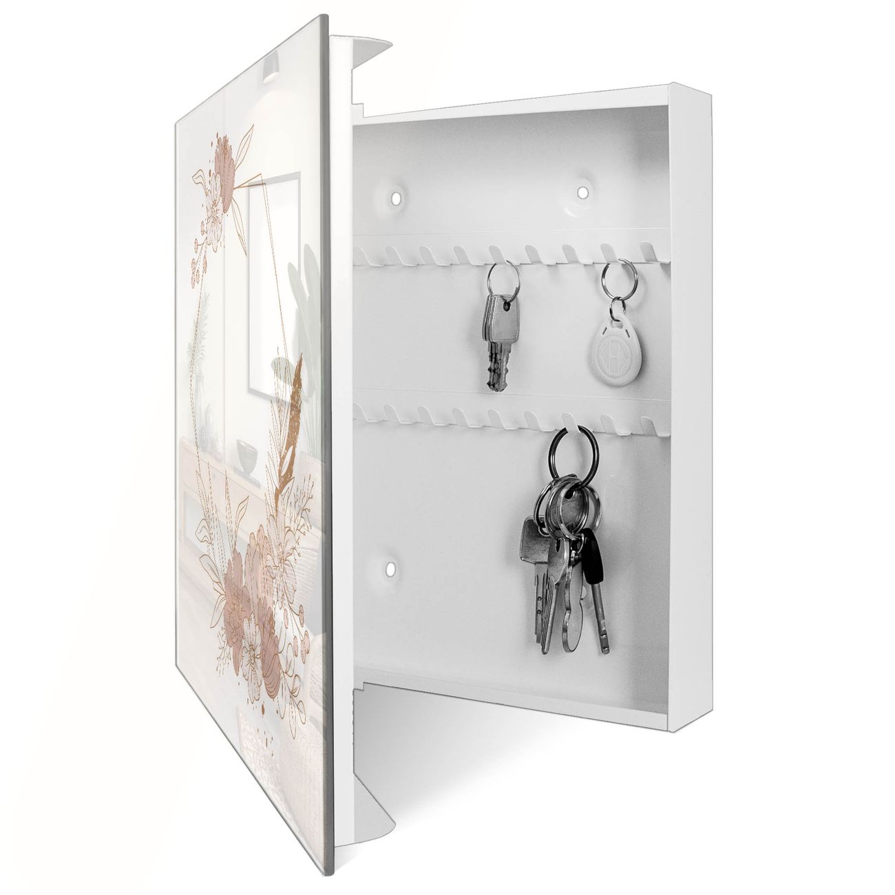Schlüsselkasten Glas Motiv Floral Geometrie