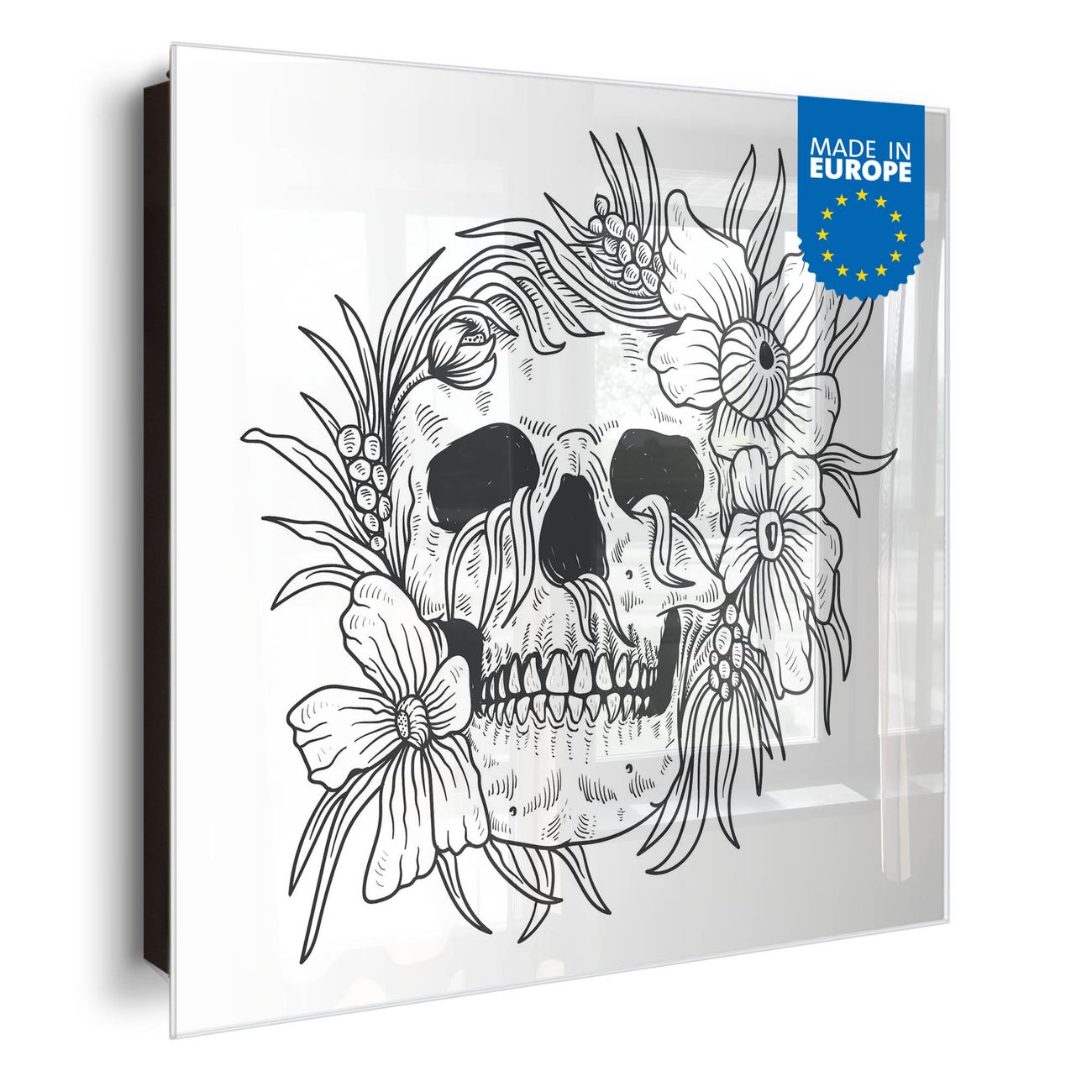 Schlüsselkasten Glas Motiv Floral Skull 2