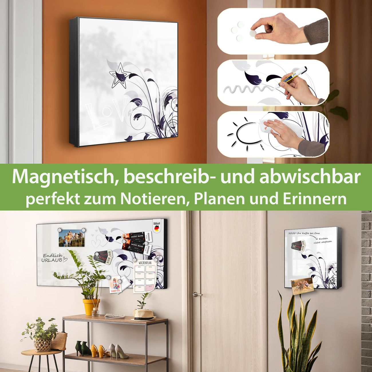 ✅ Magnetisch und mit Kreidestift beschreibbar, rechts angeschlagene TürOrdnung und Design in einem