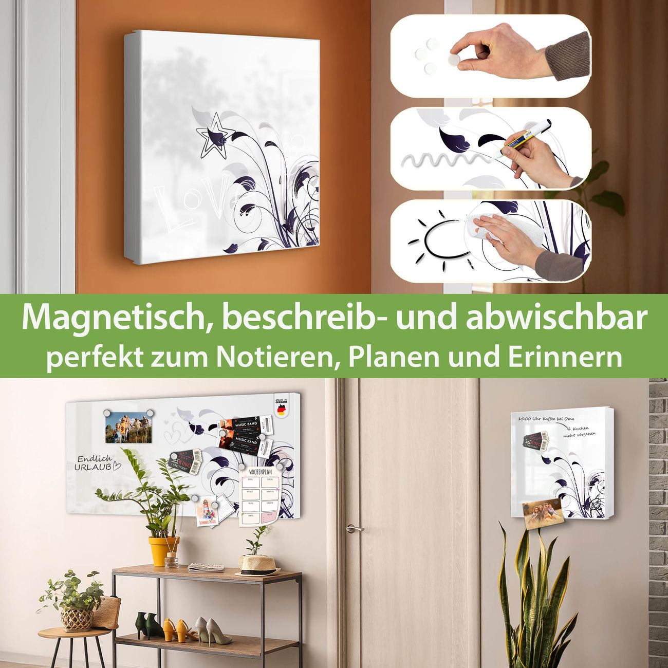 ✅ Magnetisch und mit Kreidestift beschreibbar, links angeschlagene TürOrdnung und Design in einem