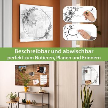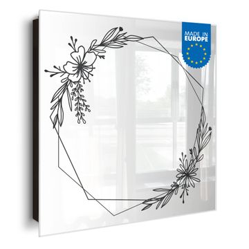 Bringe Ordnung und Eleganz in deinen Eingangsbereich mit dem banjado Schlüsselkasten Motiv Motiv Floraler Rahmen. Die moderne Schlüsselbox kombiniert funktionales Design mit hochwertiger Verarbeitung und wird so zu einem echten Hingucker in Flur, Büro oder Ferienwohnung. ✅ Stilvolle Schlüsselaufbewahrung mit Glasfront im Motiv Motiv Floraler Rahmen Der Design-Schlüsselkasten Motiv Motiv Floraler Rahmen bietet Platz für bis zu 50 Schlüssel, die auf 5 stabilen Reihen mit je 10 Haken übersichtlich verstaut werden. Mit seinen kompakten Maßen von 30 x 30 x 5 cm passt die Schlüsselbox perfekt auch in kleinere Räume. Der schwarz lackierte Stahlkorpus mit rechts angeschlagenem Türscharnier harmoniert mit der Glasfront und fügt sich nahtlos in jedes Wohnambiente ein. Ob als Schlüsselorganizer für Zuhause oder als praktische Lösung für Büros, Praxen und Gewerbe, der banjado Schlüsselkasten sorgt für Ordnung und Übersicht. Dank der magnetischen, mit Kreidestiften beschreibbaren Glasfront kannst du Notizen anheften oder Termine direkt auf der Oberfläche festhalten. Die Schlüsselbox Motiv Motiv Floraler Rahmen zur Wandmontage wird inklusive Befestigungsmaterial geliefert und ist schnell angebracht. So hast du deine Schlüssel jederzeit griffbereit und zugleich stilvoll verstaut. Mit diesem banjado Schlüsselkasten Motiv Motiv Floraler Rahmen kombinierst du praktische Aufbewahrung mit stilvollem Wohndesign. Ob privat oder geschäftlich, die Schlüsselbox sorgt für mehr Ordnung, Übersicht und ein wohnliches Ambiente.Vorteile im Überblick