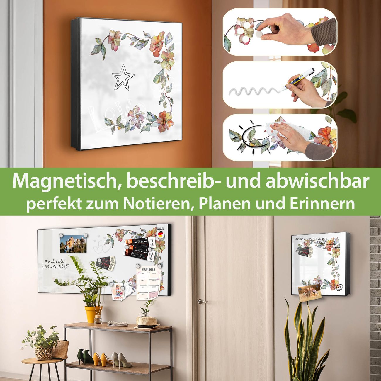 ✅ Magnetisch und mit Kreidestift beschreibbar, rechts angeschlagene TürOrdnung und Design in einem