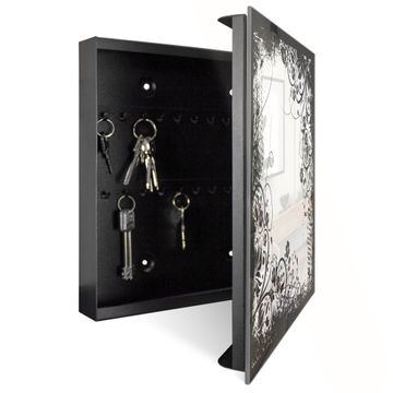 Schlüsselkasten Glas Motiv Florales Schwarz-Weiß Muster