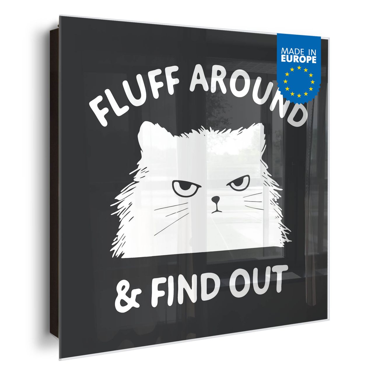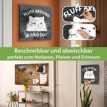 Bringe Ordnung und Eleganz in deinen Eingangsbereich mit dem banjado Schlüsselkasten Motiv Motiv Fluff Around Cat. Die moderne Schlüsselbox kombiniert funktionales Design mit hochwertiger Verarbeitung und wird so zu einem echten Hingucker in Flur, Büro oder Ferienwohnung. ✅ Stilvolle Schlüsselaufbewahrung mit Glasfront im Motiv Motiv Fluff Around Cat Der Design-Schlüsselkasten Motiv Motiv Fluff Around Cat bietet Platz für bis zu 50 Schlüssel, die auf 5 stabilen Reihen mit je 10 Haken übersichtlich verstaut werden. Mit seinen kompakten Maßen von 30 x 30 x 5 cm passt die Schlüsselbox perfekt auch in kleinere Räume. Der schwarz lackierte Stahlkorpus mit rechts angeschlagenem Türscharnier harmoniert mit der Glasfront und fügt sich nahtlos in jedes Wohnambiente ein. Ob als Schlüsselorganizer für Zuhause oder als praktische Lösung für Büros, Praxen und Gewerbe, der banjado Schlüsselkasten sorgt für Ordnung und Übersicht. Dank der magnetischen, mit Kreidestiften beschreibbaren Glasfront kannst du Notizen anheften oder Termine direkt auf der Oberfläche festhalten. Die Schlüsselbox Motiv Motiv Fluff Around Cat zur Wandmontage wird inklusive Befestigungsmaterial geliefert und ist schnell angebracht. So hast du deine Schlüssel jederzeit griffbereit und zugleich stilvoll verstaut. Mit diesem banjado Schlüsselkasten Motiv Motiv Fluff Around Cat kombinierst du praktische Aufbewahrung mit stilvollem Wohndesign. Ob privat oder geschäftlich, die Schlüsselbox sorgt für mehr Ordnung, Übersicht und ein wohnliches Ambiente.Vorteile im Überblick