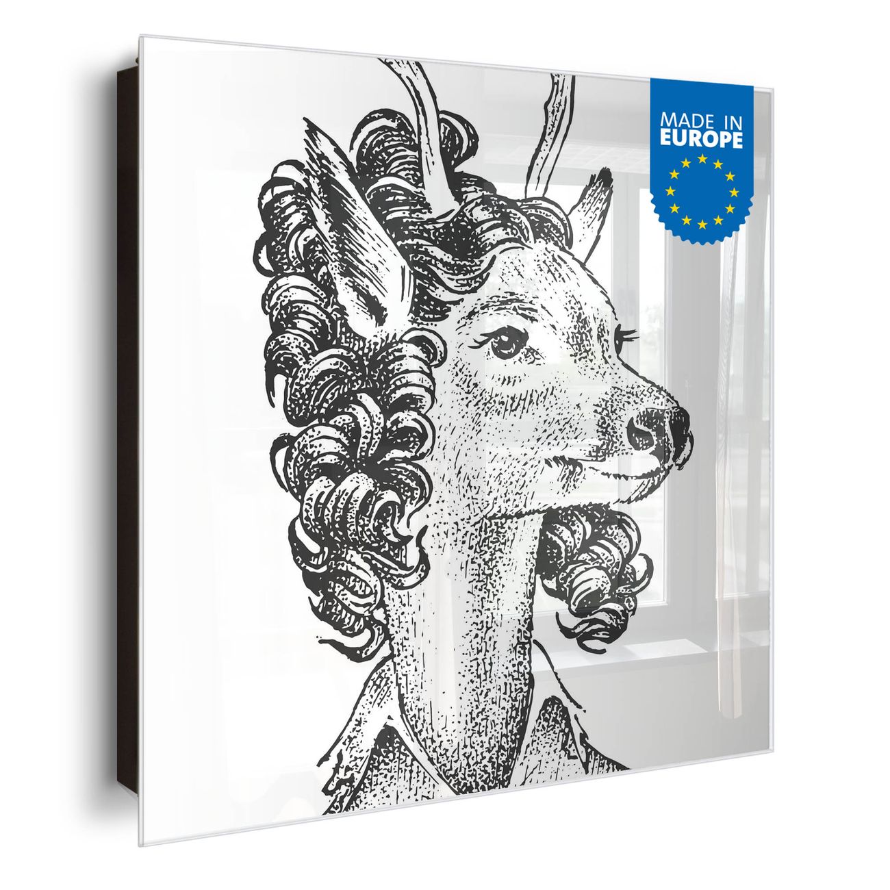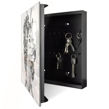 Bringe Ordnung und Eleganz in deinen Eingangsbereich mit dem banjado Schlüsselkasten Motiv Motiv Frau Hirsch 2. Die moderne Schlüsselbox kombiniert funktionales Design mit hochwertiger Verarbeitung und wird so zu einem echten Hingucker in Flur, Büro oder Ferienwohnung. ✅ Stilvolle Schlüsselaufbewahrung mit Glasfront im Motiv Motiv Frau Hirsch 2 Der Design-Schlüsselkasten Motiv Motiv Frau Hirsch 2 bietet Platz für bis zu 50 Schlüssel, die auf 5 stabilen Reihen mit je 10 Haken übersichtlich verstaut werden. Mit seinen kompakten Maßen von 30 x 30 x 5 cm passt die Schlüsselbox perfekt auch in kleinere Räume. Der schwarz lackierte Stahlkorpus mit rechts angeschlagenem Türscharnier harmoniert mit der Glasfront und fügt sich nahtlos in jedes Wohnambiente ein. Ob als Schlüsselorganizer für Zuhause oder als praktische Lösung für Büros, Praxen und Gewerbe, der banjado Schlüsselkasten sorgt für Ordnung und Übersicht. Dank der magnetischen, mit Kreidestiften beschreibbaren Glasfront kannst du Notizen anheften oder Termine direkt auf der Oberfläche festhalten. Die Schlüsselbox Motiv Motiv Frau Hirsch 2 zur Wandmontage wird inklusive Befestigungsmaterial geliefert und ist schnell angebracht. So hast du deine Schlüssel jederzeit griffbereit und zugleich stilvoll verstaut. Mit diesem banjado Schlüsselkasten Motiv Motiv Frau Hirsch 2 kombinierst du praktische Aufbewahrung mit stilvollem Wohndesign. Ob privat oder geschäftlich, die Schlüsselbox sorgt für mehr Ordnung, Übersicht und ein wohnliches Ambiente.Vorteile im Überblick