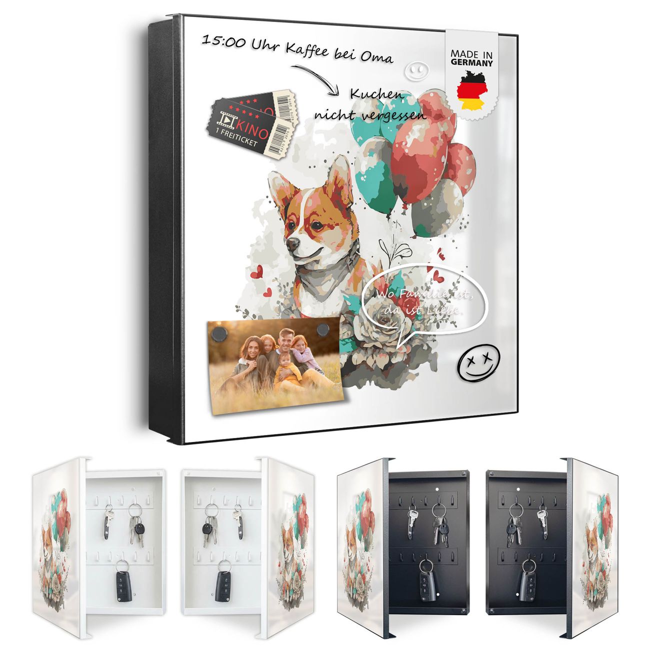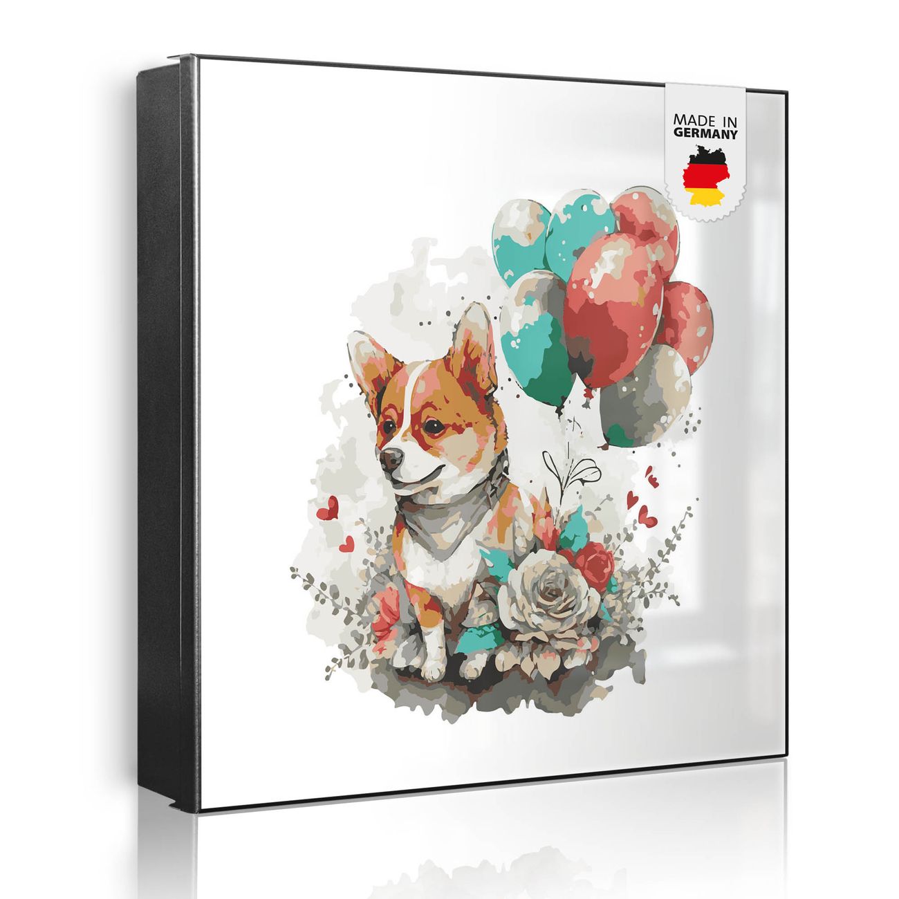 Schlüsselkasten Motiv Corgi mit Ballons Aquarell