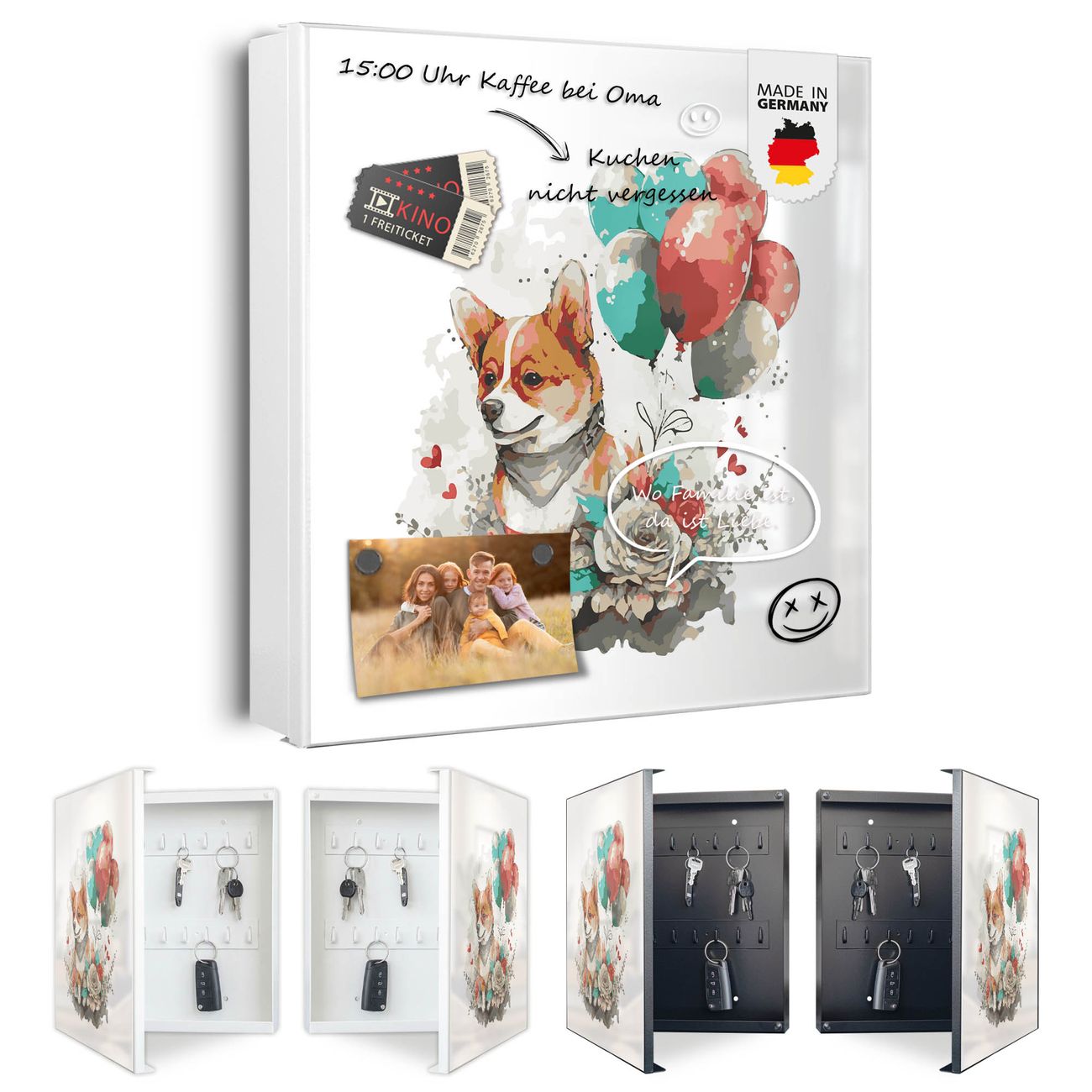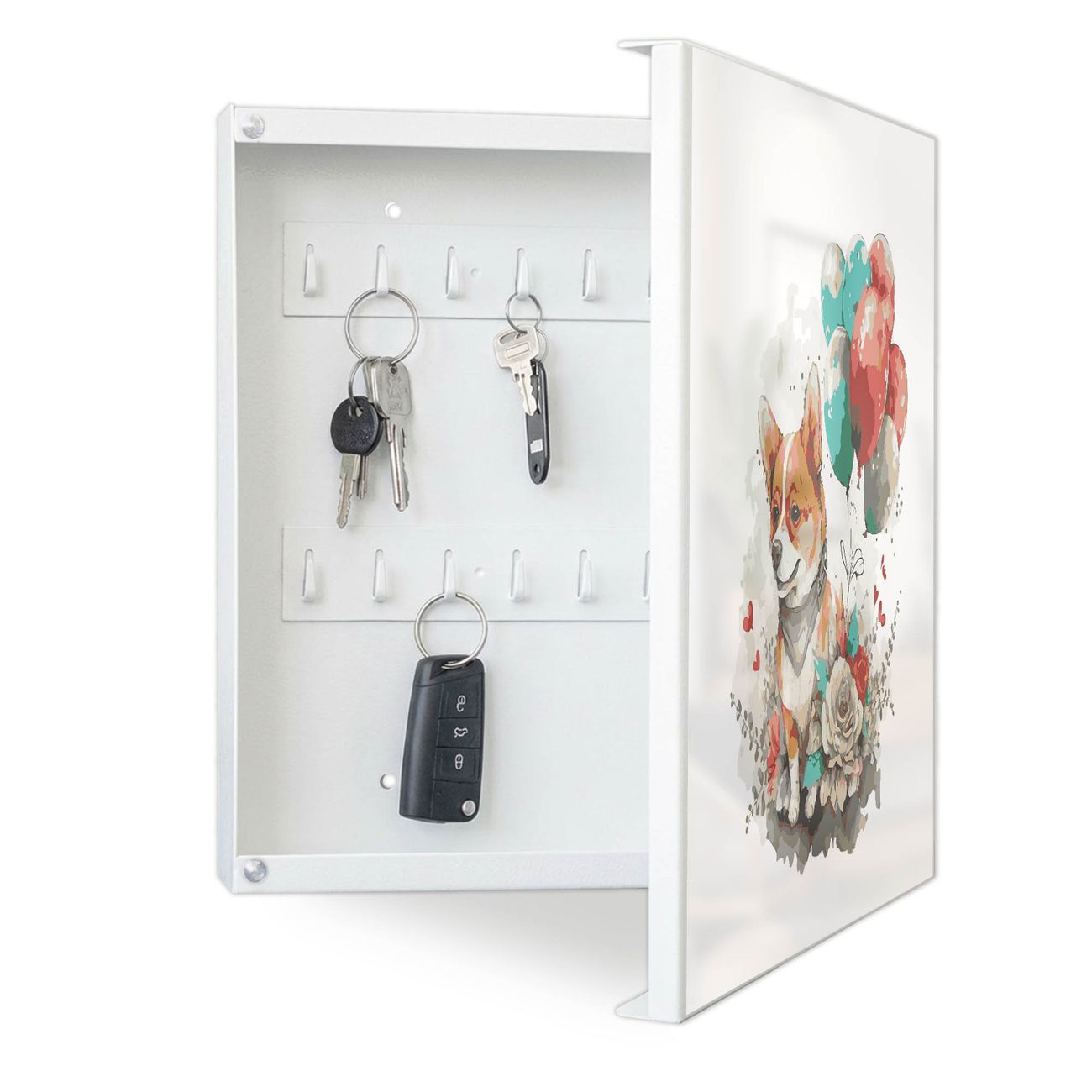 Schlüsselkasten Motiv Corgi mit Ballons Aquarell