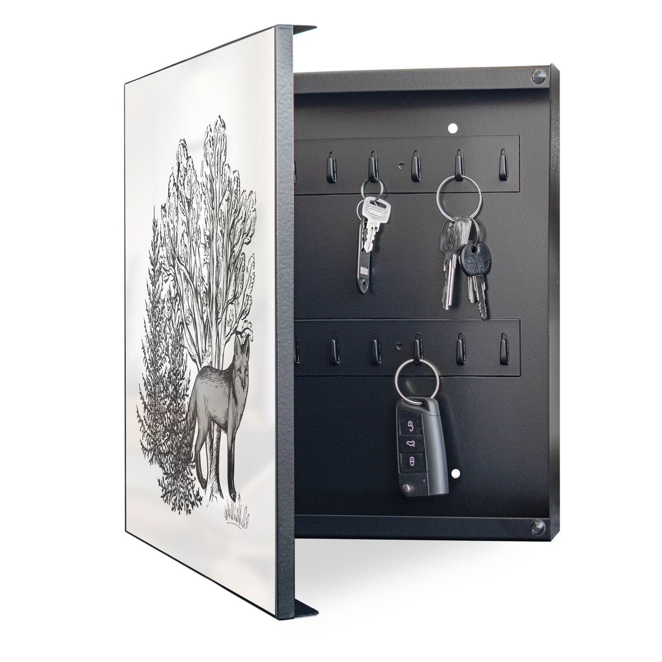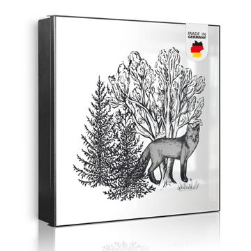 Schlüsselkasten Motiv Fuchs in Schwarz-Weiß