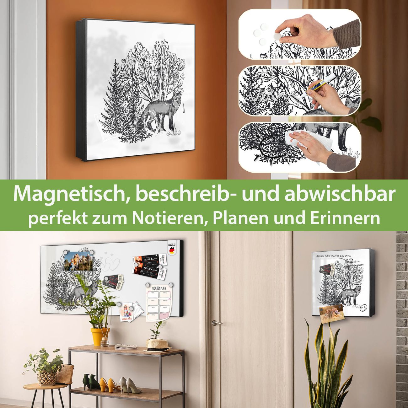 ✅ Magnetisch und mit Kreidestift beschreibbar, links angeschlagene TürOrdnung und Design in einem