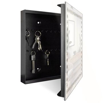 Bringe Ordnung und Eleganz in deinen Eingangsbereich mit dem banjado Schlüsselkasten Motiv Motiv Gänseblümchen-Rahmen. Die moderne Schlüsselbox kombiniert funktionales Design mit hochwertiger Verarbeitung und wird so zu einem echten Hingucker in Flur, Büro oder Ferienwohnung. ✅ Stilvolle Schlüsselaufbewahrung mit Glasfront im Motiv Motiv Gänseblümchen-Rahmen Der Design-Schlüsselkasten Motiv Motiv Gänseblümchen-Rahmen bietet Platz für bis zu 50 Schlüssel, die auf 5 stabilen Reihen mit je 10 Haken übersichtlich verstaut werden. Mit seinen kompakten Maßen von 30 x 30 x 5 cm passt die Schlüsselbox perfekt auch in kleinere Räume. Der schwarz lackierte Stahlkorpus mit rechts angeschlagenem Türscharnier harmoniert mit der Glasfront und fügt sich nahtlos in jedes Wohnambiente ein. Ob als Schlüsselorganizer für Zuhause oder als praktische Lösung für Büros, Praxen und Gewerbe, der banjado Schlüsselkasten sorgt für Ordnung und Übersicht. Dank der magnetischen, mit Kreidestiften beschreibbaren Glasfront kannst du Notizen anheften oder Termine direkt auf der Oberfläche festhalten. Die Schlüsselbox Motiv Motiv Gänseblümchen-Rahmen zur Wandmontage wird inklusive Befestigungsmaterial geliefert und ist schnell angebracht. So hast du deine Schlüssel jederzeit griffbereit und zugleich stilvoll verstaut. Mit diesem banjado Schlüsselkasten Motiv Motiv Gänseblümchen-Rahmen kombinierst du praktische Aufbewahrung mit stilvollem Wohndesign. Ob privat oder geschäftlich, die Schlüsselbox sorgt für mehr Ordnung, Übersicht und ein wohnliches Ambiente.Vorteile im Überblick
