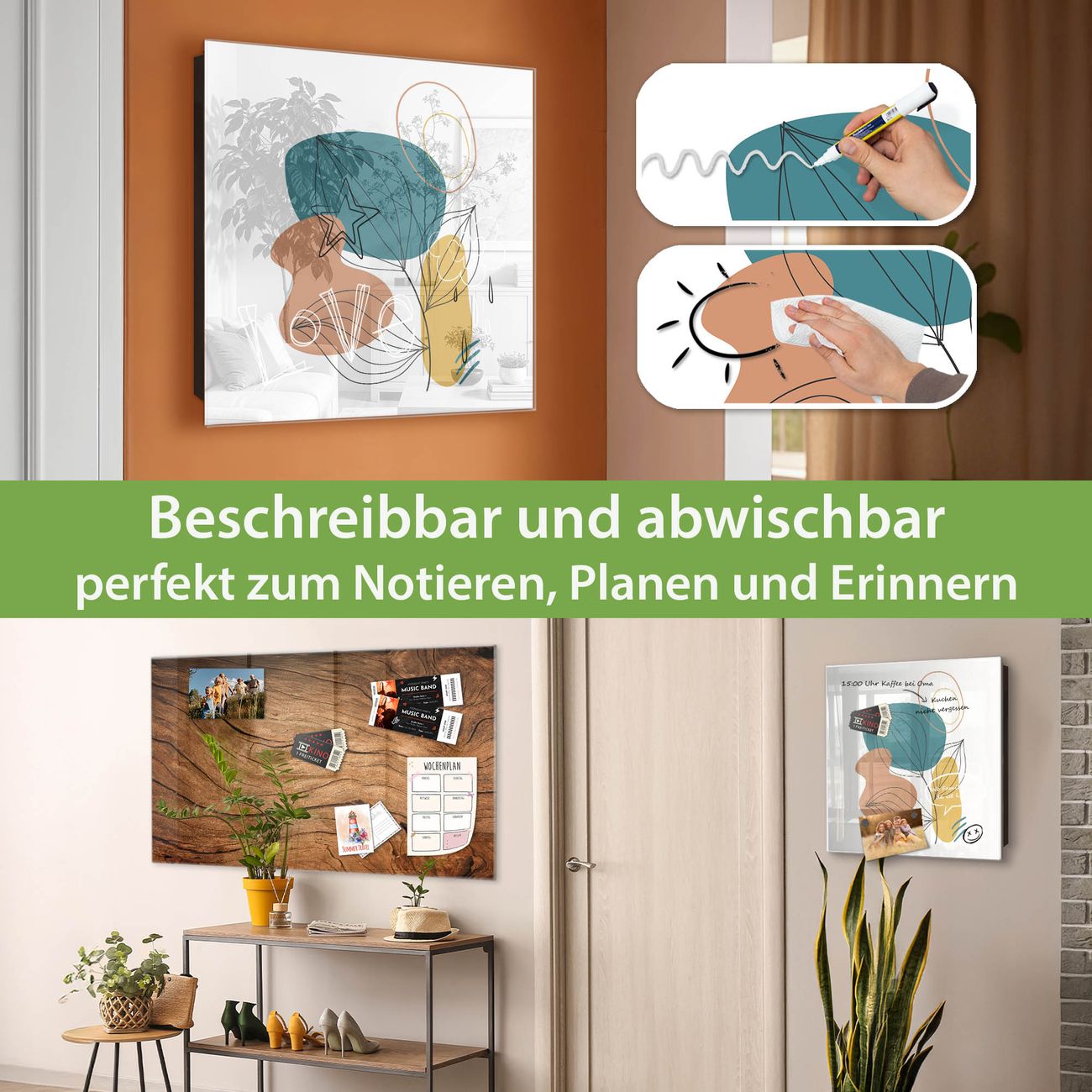 ✅ Magnetisch und mit Kreidestift beschreibbar, gehärtetes Glas, rechts angeschlagene TürOrdnung und Design in einem