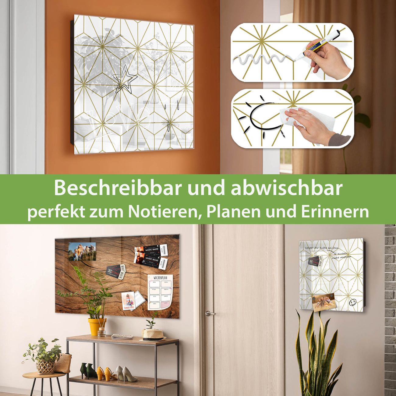 ✅ Magnetisch und mit Kreidestift beschreibbar, gehärtetes Glas, rechts angeschlagene TürOrdnung und Design in einem