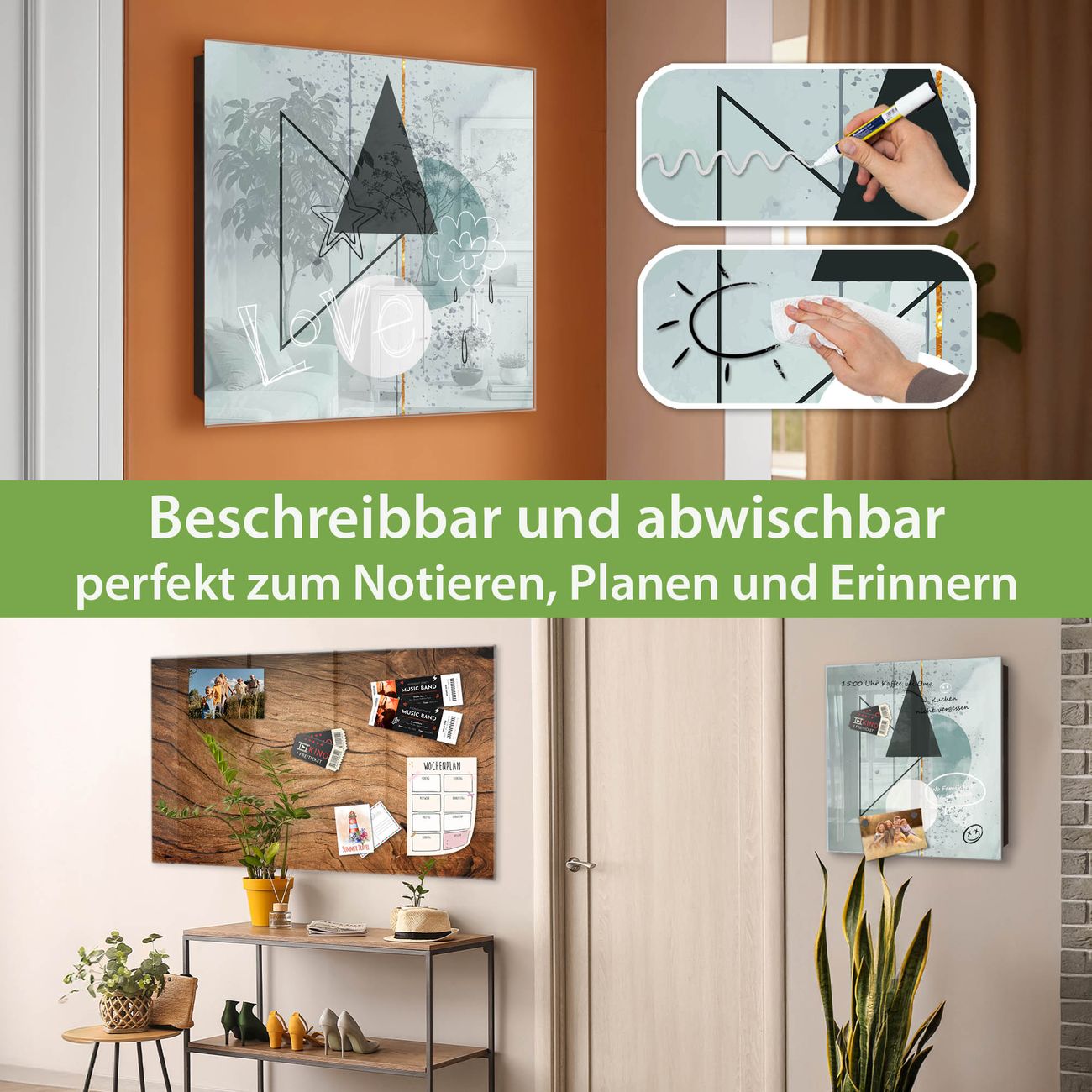 ✅ Magnetisch und mit Kreidestift beschreibbar, gehärtetes Glas, links angeschlagene TürOrdnung und Design in einem