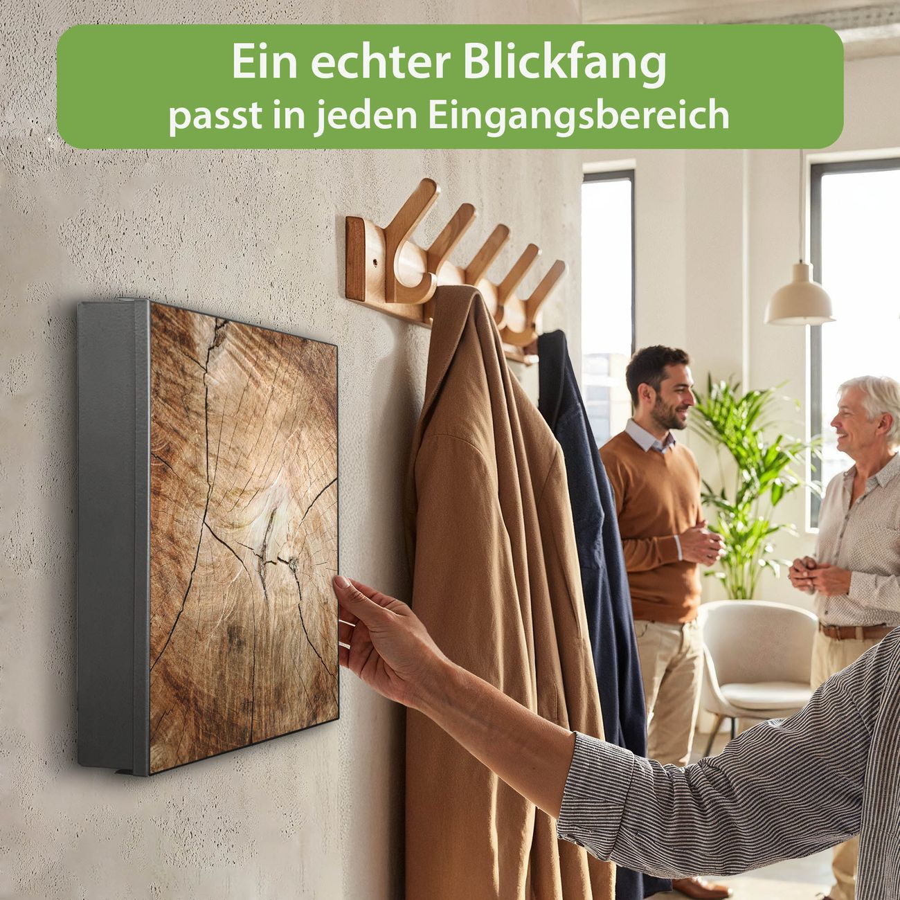 Bringe Ordnung und Eleganz in deinen Eingangsbereich mit dem banjado Schlüsselkasten Motiv Motiv Getrocknetes Holz. Die moderne Schlüsselbox kombiniert funktionales Design mit hochwertiger Verarbeitung und wird so zu einem echten Hingucker in Flur, Büro oder Ferienwohnung. ✅ Stilvolle Schlüsselaufbewahrung mit Motiv Motiv Getrocknetes Holz Der Design-Schlüsselkasten Motiv Motiv Getrocknetes Holz bietet Platz für bis zu 32 Schlüssel, die auf 4 stabilen Reihen mit je 8 Haken übersichtlich verstaut werden. Mit seinen kompakten Maßen von 30 x 30 x 5 cm passt die Schlüsselbox perfekt auch in kleinere Räume. Der schwarz lackierte Stahlkorpus mit rechts angeschlagenem Türscharnier harmoniert mit gedruckten Folie auf der Front und fügt sich nahtlos in jedes Wohnambiente ein. Ob als Schlüsselorganizer für Zuhause oder als praktische Lösung für Büros, Praxen und Gewerbe, der banjado Schlüsselkasten sorgt für Ordnung und Übersicht. Dank der magnetischen, mit Kreidestiften beschreibbaren Folie auf der Front kannst du Notizen anheften oder Termine direkt auf der Oberfläche festhalten. Die Schlüsselbox Motiv Motiv Getrocknetes Holz zur Wandmontage wird inklusive Befestigungsmaterial geliefert und ist schnell angebracht. So hast du deine Schlüssel jederzeit griffbereit und zugleich stilvoll verstaut. Mit diesem banjado Schlüsselkasten Motiv Motiv Getrocknetes Holz kombinierst du praktische Aufbewahrung mit stilvollem Wohndesign. Ob privat oder geschäftlich, die Schlüsselbox sorgt für mehr Ordnung, Übersicht und ein wohnliches Ambiente.Vorteile im Überblick