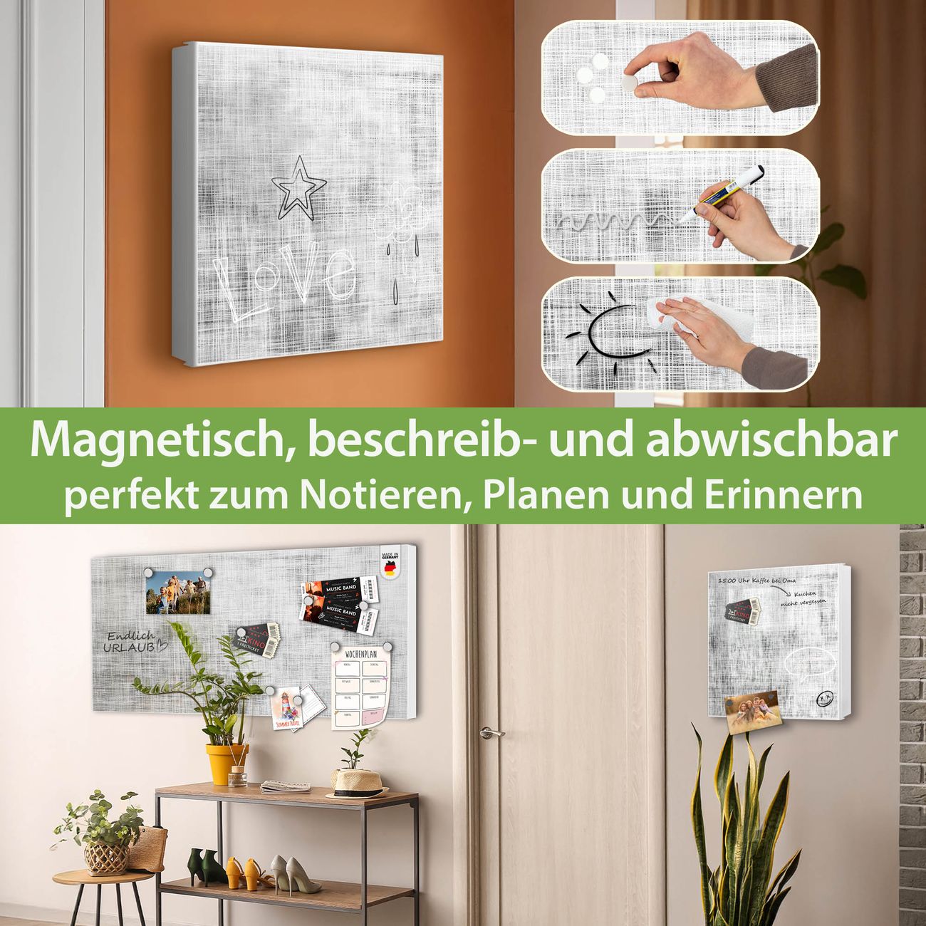 ✅ Magnetisch und mit Kreidestift beschreibbar, links angeschlagene TürOrdnung und Design in einem