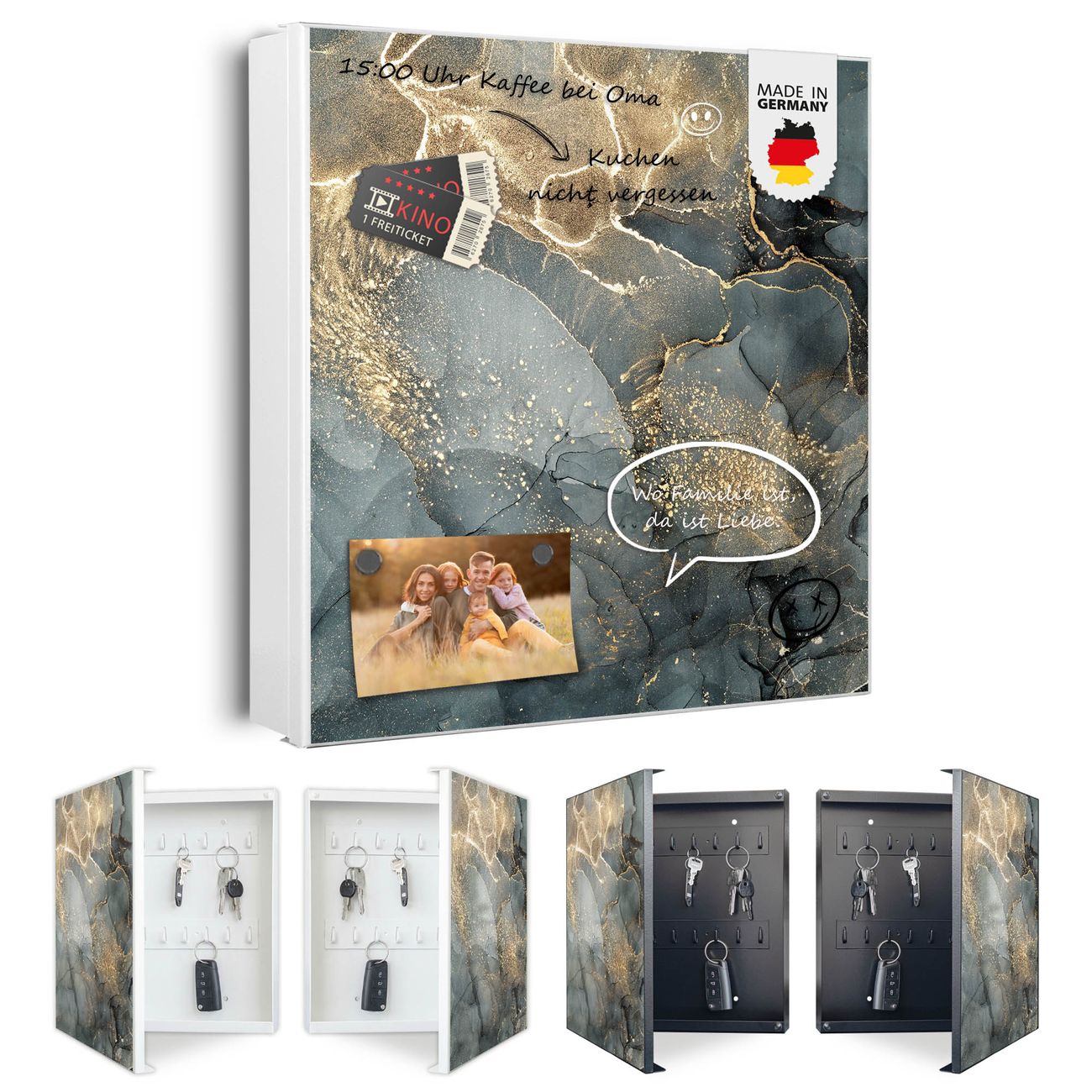 Schlüsselkasten Motiv grauer Marmor mit Gold 1