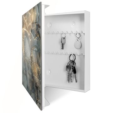 Schlüsselkasten Glas Motiv grauer Marmor mit Gold 1