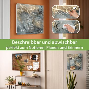 Bringe Ordnung und Eleganz in deinen Eingangsbereich mit dem banjado Schlüsselkasten Motiv grauer Marmor mit Gold 1. Die moderne Schlüsselbox kombiniert funktionales Design mit hochwertiger Verarbeitung und wird so zu einem echten Hingucker in Flur, Büro oder Ferienwohnung. ✅ Stilvolle Schlüsselaufbewahrung mit Glasfront im Motiv Motiv grauer Marmor mit Gold 1 Der Design-Schlüsselkasten Motiv grauer Marmor mit Gold 1 bietet Platz für bis zu 50 Schlüssel, die auf 5 stabilen Reihen mit je 10 Haken übersichtlich verstaut werden. Mit seinen kompakten Maßen von 30 x 30 x 5 cm passt die Schlüsselbox perfekt auch in kleinere Räume. Der weiß lackierte Stahlkorpus mit rechts angeschlagenem Türscharnier harmoniert mit der Glasfront und fügt sich nahtlos in jedes Wohnambiente ein. Ob als Schlüsselorganizer für Zuhause oder als praktische Lösung für Büros, Praxen und Gewerbe, der banjado Schlüsselkasten sorgt für Ordnung und Übersicht. Dank der magnetischen, mit Kreidestiften beschreibbaren Glasfront kannst du Notizen anheften oder Termine direkt auf der Oberfläche festhalten. Die Schlüsselbox Motiv grauer Marmor mit Gold 1 zur Wandmontage wird inklusive Befestigungsmaterial geliefert und ist schnell angebracht. So hast du deine Schlüssel jederzeit griffbereit und zugleich stilvoll verstaut. Mit diesem banjado Schlüsselkasten Motiv grauer Marmor mit Gold 1 kombinierst du praktische Aufbewahrung mit stilvollem Wohndesign. Ob privat oder geschäftlich, die Schlüsselbox sorgt für mehr Ordnung, Übersicht und ein wohnliches Ambiente.Vorteile im Überblick