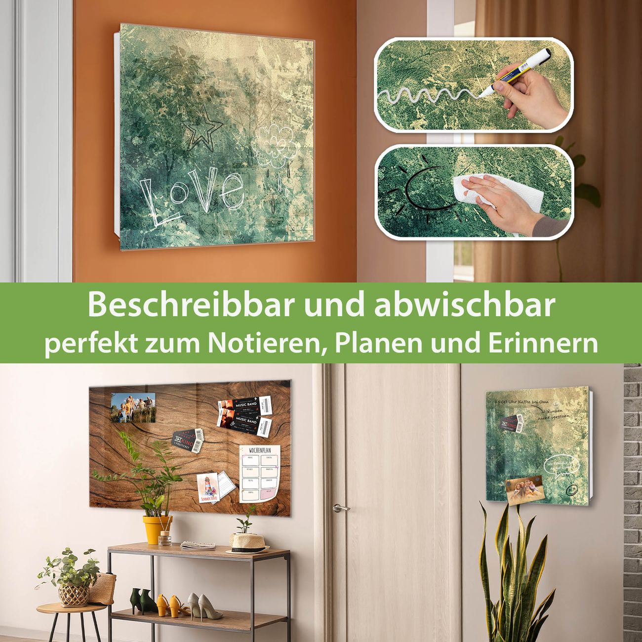 ✅ Magnetisch und mit Kreidestift beschreibbar, gehärtetes Glas, rechts angeschlagene TürOrdnung und Design in einem