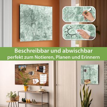 Bringe Ordnung und Eleganz in deinen Eingangsbereich mit dem banjado Schlüsselkasten Motiv Grüner Marmor 1. Die moderne Schlüsselbox kombiniert funktionales Design mit hochwertiger Verarbeitung und wird so zu einem echten Hingucker in Flur, Büro oder Ferienwohnung. ✅ Stilvolle Schlüsselaufbewahrung mit Glasfront im Motiv Motiv Grüner Marmor 1 Der Design-Schlüsselkasten Motiv Grüner Marmor 1 bietet Platz für bis zu 50 Schlüssel, die auf 5 stabilen Reihen mit je 10 Haken übersichtlich verstaut werden. Mit seinen kompakten Maßen von 30 x 30 x 5 cm passt die Schlüsselbox perfekt auch in kleinere Räume. Der schwarz lackierte Stahlkorpus mit rechts angeschlagenem Türscharnier harmoniert mit der Glasfront und fügt sich nahtlos in jedes Wohnambiente ein. Ob als Schlüsselorganizer für Zuhause oder als praktische Lösung für Büros, Praxen und Gewerbe, der banjado Schlüsselkasten sorgt für Ordnung und Übersicht. Dank der magnetischen, mit Kreidestiften beschreibbaren Glasfront kannst du Notizen anheften oder Termine direkt auf der Oberfläche festhalten. Die Schlüsselbox Motiv Grüner Marmor 1 zur Wandmontage wird inklusive Befestigungsmaterial geliefert und ist schnell angebracht. So hast du deine Schlüssel jederzeit griffbereit und zugleich stilvoll verstaut. Mit diesem banjado Schlüsselkasten Motiv Grüner Marmor 1 kombinierst du praktische Aufbewahrung mit stilvollem Wohndesign. Ob privat oder geschäftlich, die Schlüsselbox sorgt für mehr Ordnung, Übersicht und ein wohnliches Ambiente.Vorteile im Überblick