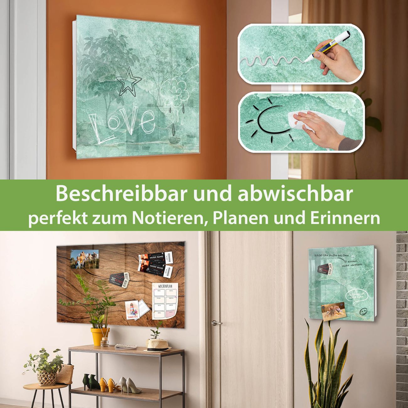 ✅ Magnetisch und mit Kreidestift beschreibbar, gehärtetes Glas, rechts angeschlagene TürOrdnung und Design in einem