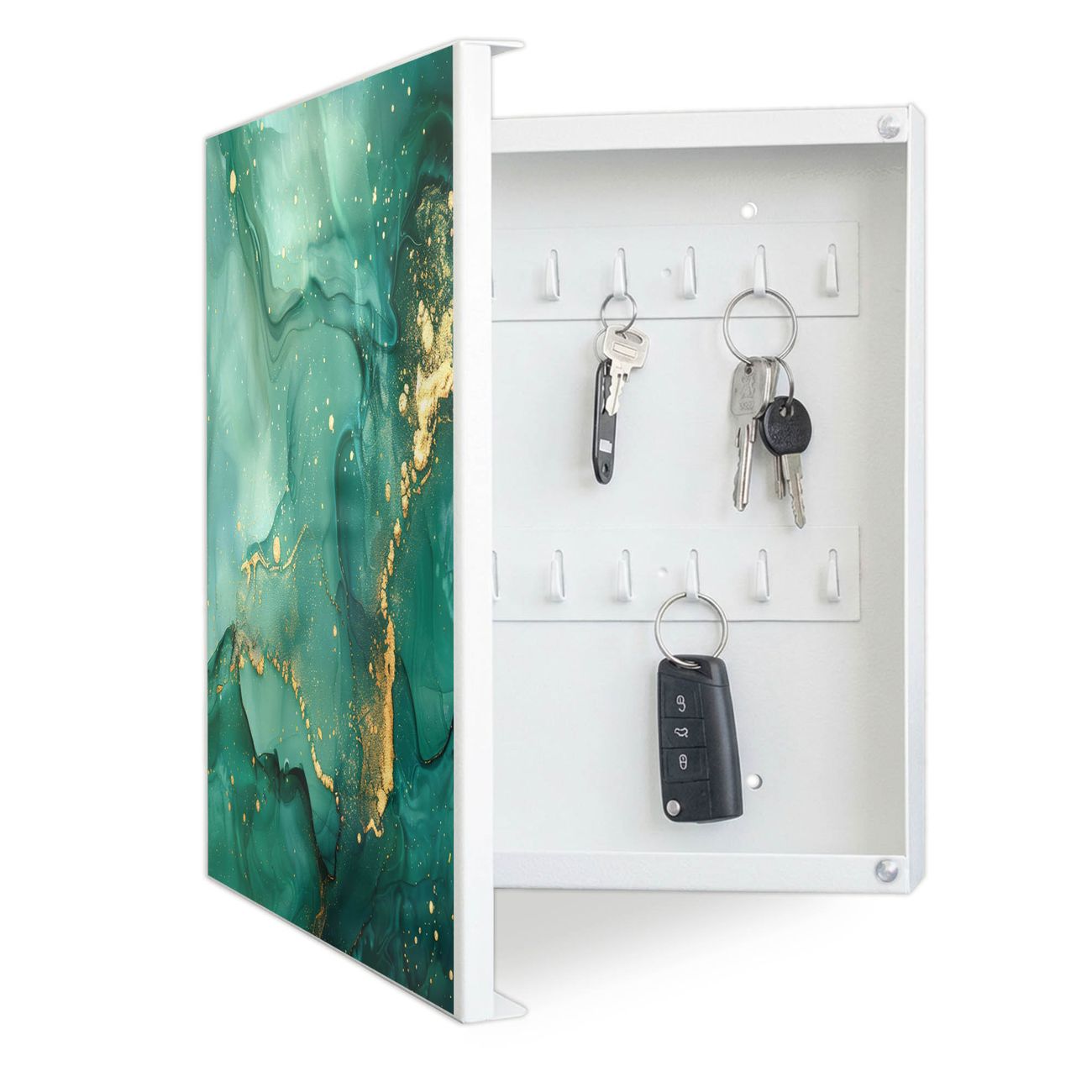 Schlüsselkasten Motiv Grüner Marmor mit Gold 1