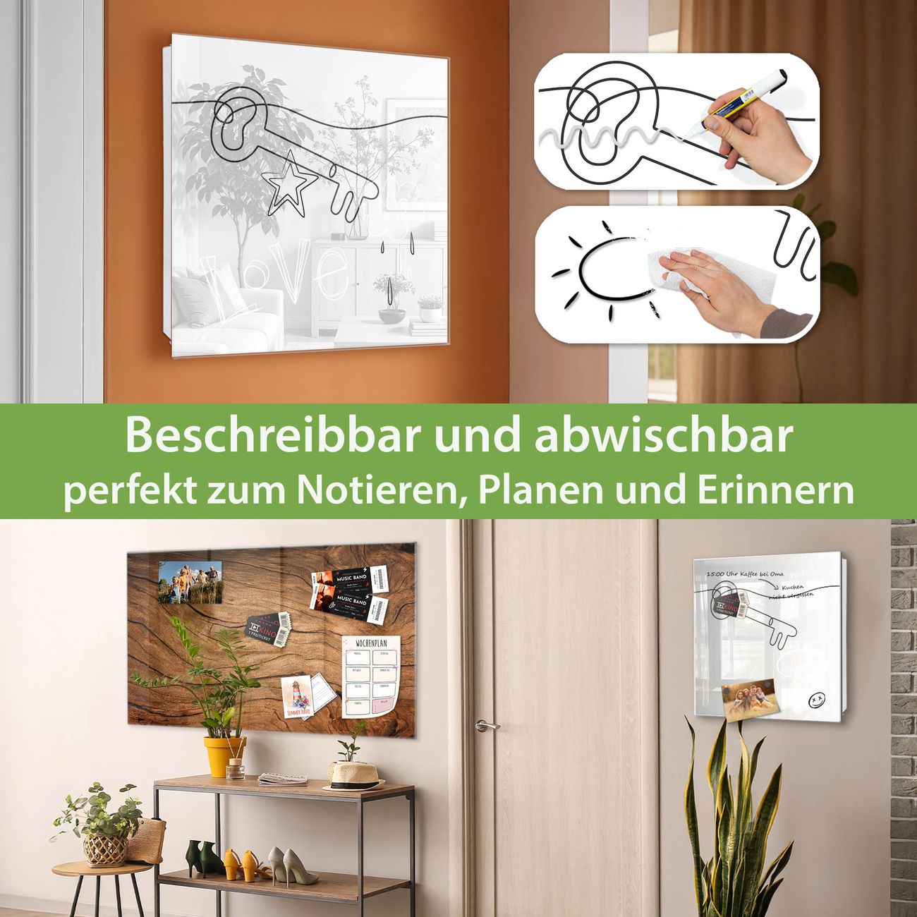 ✅ Magnetisch und mit Kreidestift beschreibbar, gehärtetes Glas, links angeschlagene TürOrdnung und Design in einem