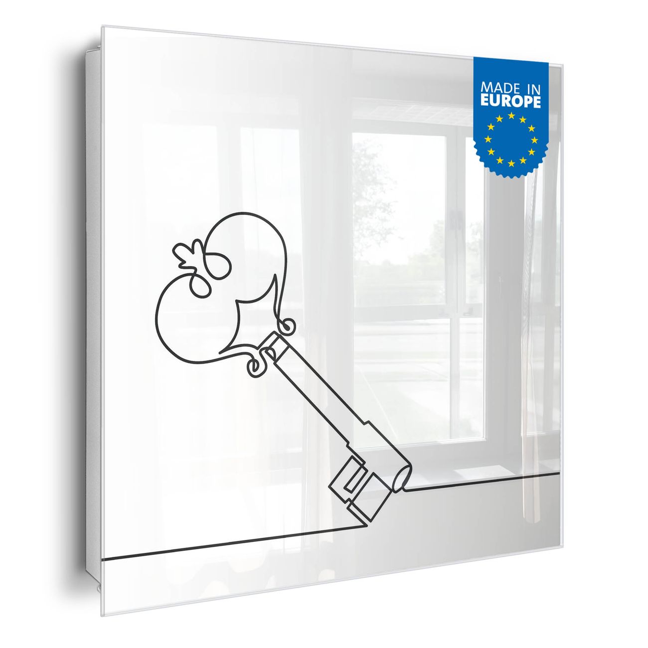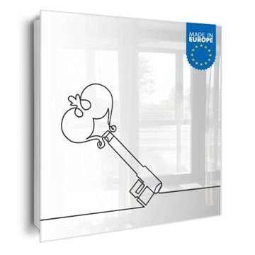Bringe Ordnung und Eleganz in deinen Eingangsbereich mit dem banjado Schlüsselkasten Motiv Motiv Hausherrin Schlüssel 2. Die moderne Schlüsselbox kombiniert funktionales Design mit hochwertiger Verarbeitung und wird so zu einem echten Hingucker in Flur, Büro oder Ferienwohnung. ✅ Stilvolle Schlüsselaufbewahrung mit Glasfront im Motiv Motiv Hausherrin Schlüssel 2 Der Design-Schlüsselkasten Motiv Motiv Hausherrin Schlüssel 2 bietet Platz für bis zu 50 Schlüssel, die auf 5 stabilen Reihen mit je 10 Haken übersichtlich verstaut werden. Mit seinen kompakten Maßen von 30 x 30 x 5 cm passt die Schlüsselbox perfekt auch in kleinere Räume. Der weiß lackierte Stahlkorpus mit rechts angeschlagenem Türscharnier harmoniert mit der Glasfront und fügt sich nahtlos in jedes Wohnambiente ein. Ob als Schlüsselorganizer für Zuhause oder als praktische Lösung für Büros, Praxen und Gewerbe, der banjado Schlüsselkasten sorgt für Ordnung und Übersicht. Dank der magnetischen, mit Kreidestiften beschreibbaren Glasfront kannst du Notizen anheften oder Termine direkt auf der Oberfläche festhalten. Die Schlüsselbox Motiv Motiv Hausherrin Schlüssel 2 zur Wandmontage wird inklusive Befestigungsmaterial geliefert und ist schnell angebracht. So hast du deine Schlüssel jederzeit griffbereit und zugleich stilvoll verstaut. Mit diesem banjado Schlüsselkasten Motiv Motiv Hausherrin Schlüssel 2 kombinierst du praktische Aufbewahrung mit stilvollem Wohndesign. Ob privat oder geschäftlich, die Schlüsselbox sorgt für mehr Ordnung, Übersicht und ein wohnliches Ambiente.Vorteile im Überblick