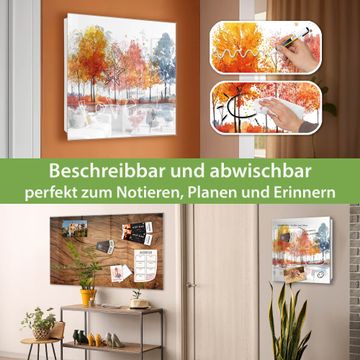 Bringe Ordnung und Eleganz in deinen Eingangsbereich mit dem banjado Schlüsselkasten Motiv Motiv Herbstlicher Baumzauber. Die moderne Schlüsselbox kombiniert funktionales Design mit hochwertiger Verarbeitung und wird so zu einem echten Hingucker in Flur, Büro oder Ferienwohnung. ✅ Stilvolle Schlüsselaufbewahrung mit Glasfront im Motiv Motiv Herbstlicher Baumzauber Der Design-Schlüsselkasten Motiv Motiv Herbstlicher Baumzauber bietet Platz für bis zu 50 Schlüssel, die auf 5 stabilen Reihen mit je 10 Haken übersichtlich verstaut werden. Mit seinen kompakten Maßen von 30 x 30 x 5 cm passt die Schlüsselbox perfekt auch in kleinere Räume. Der weiß lackierte Stahlkorpus mit rechts angeschlagenem Türscharnier harmoniert mit der Glasfront und fügt sich nahtlos in jedes Wohnambiente ein. Ob als Schlüsselorganizer für Zuhause oder als praktische Lösung für Büros, Praxen und Gewerbe, der banjado Schlüsselkasten sorgt für Ordnung und Übersicht. Dank der magnetischen, mit Kreidestiften beschreibbaren Glasfront kannst du Notizen anheften oder Termine direkt auf der Oberfläche festhalten. Die Schlüsselbox Motiv Motiv Herbstlicher Baumzauber zur Wandmontage wird inklusive Befestigungsmaterial geliefert und ist schnell angebracht. So hast du deine Schlüssel jederzeit griffbereit und zugleich stilvoll verstaut. Mit diesem banjado Schlüsselkasten Motiv Motiv Herbstlicher Baumzauber kombinierst du praktische Aufbewahrung mit stilvollem Wohndesign. Ob privat oder geschäftlich, die Schlüsselbox sorgt für mehr Ordnung, Übersicht und ein wohnliches Ambiente.Vorteile im Überblick
