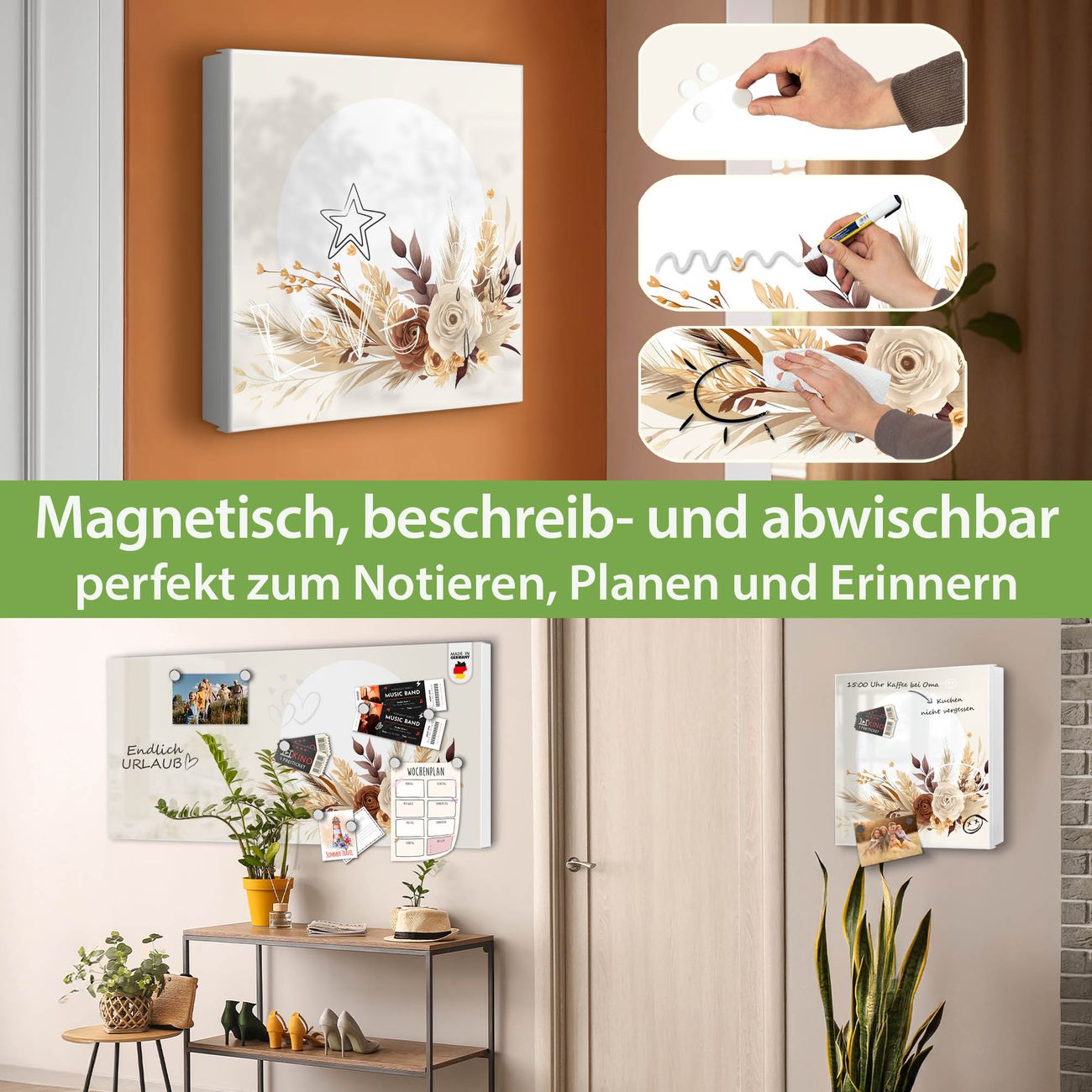 ✅ Magnetisch und mit Kreidestift beschreibbar, links angeschlagene TürOrdnung und Design in einem