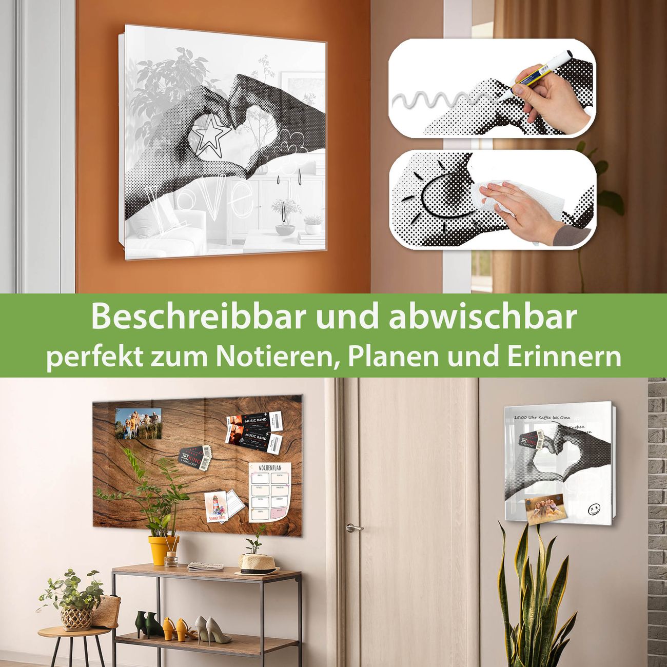 ✅ Magnetisch und mit Kreidestift beschreibbar, gehärtetes Glas, rechts angeschlagene TürOrdnung und Design in einem